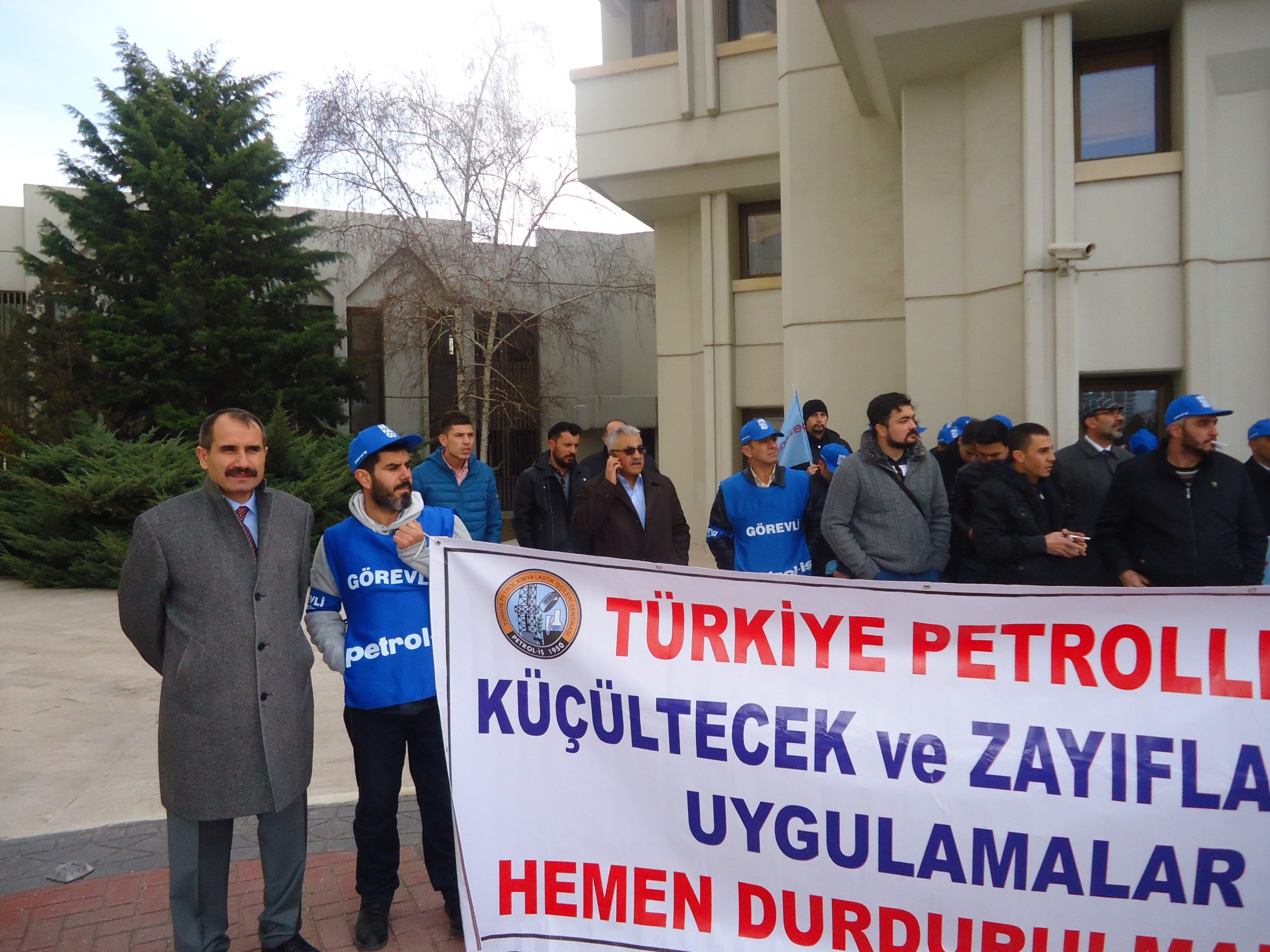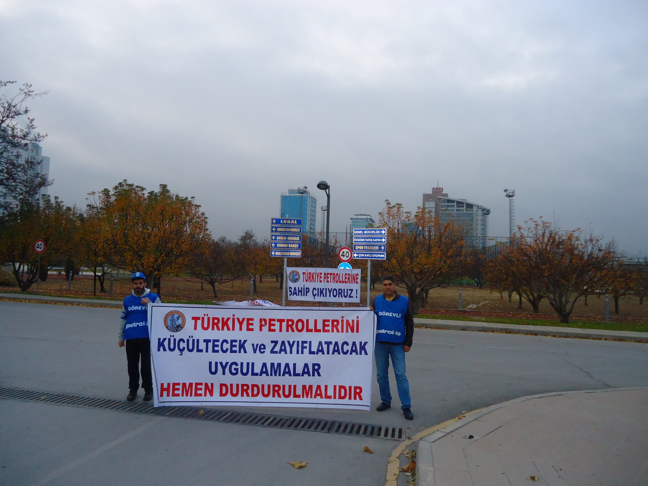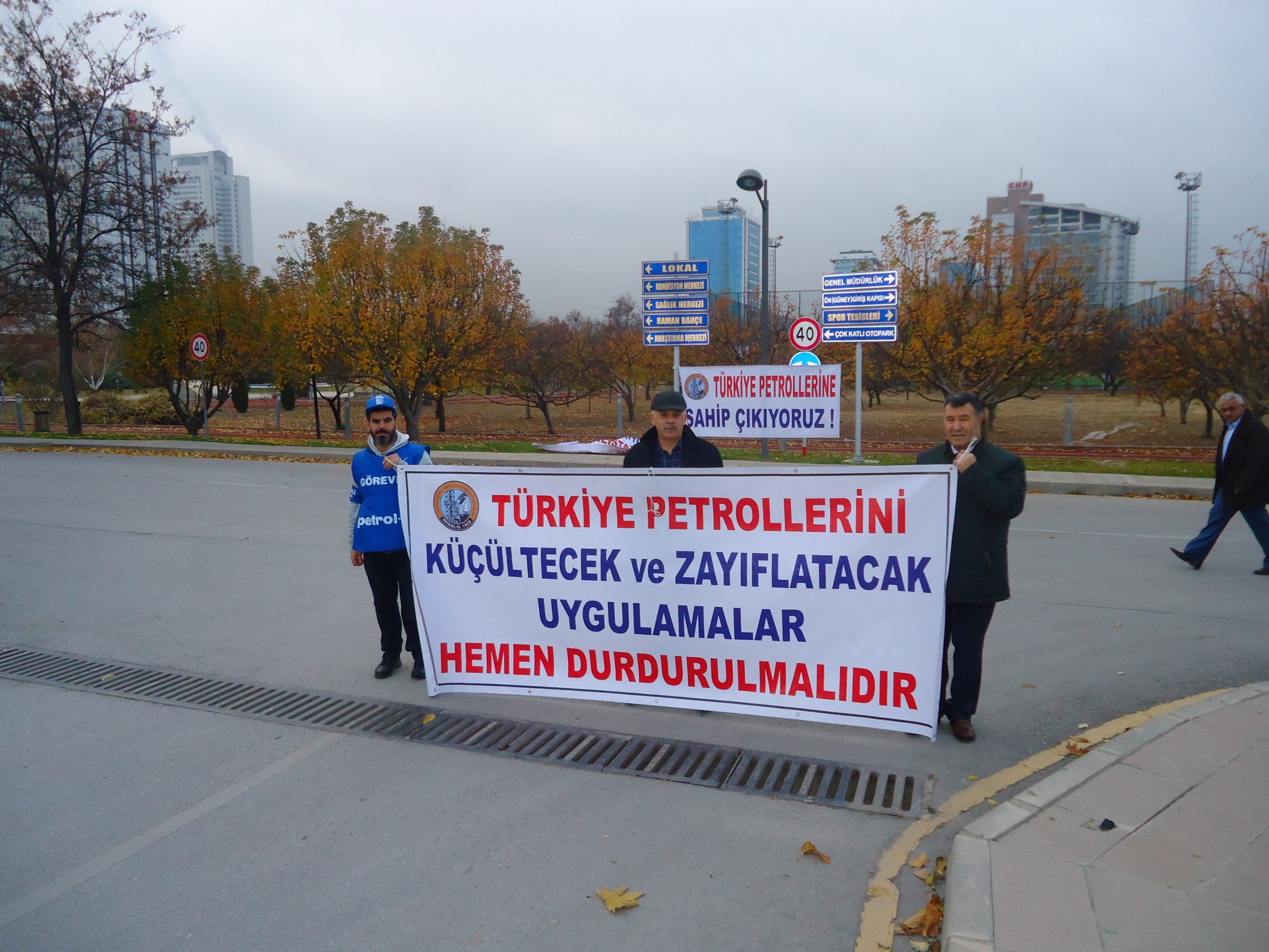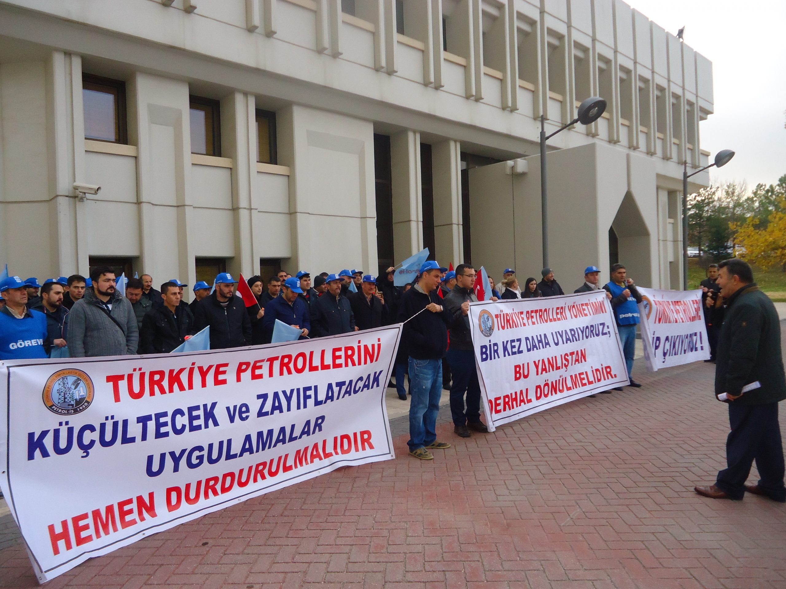 Türkiye Petrolleri’nin (TP) yürüttüğü faaliyetlerin başka şirketlere devri yoluyla küçültülmesine karşı 14 Kasım Pazartesi günü 1 günlük iş bırakma eylemi gerçekleştirildi.