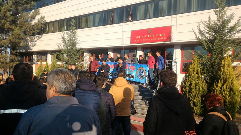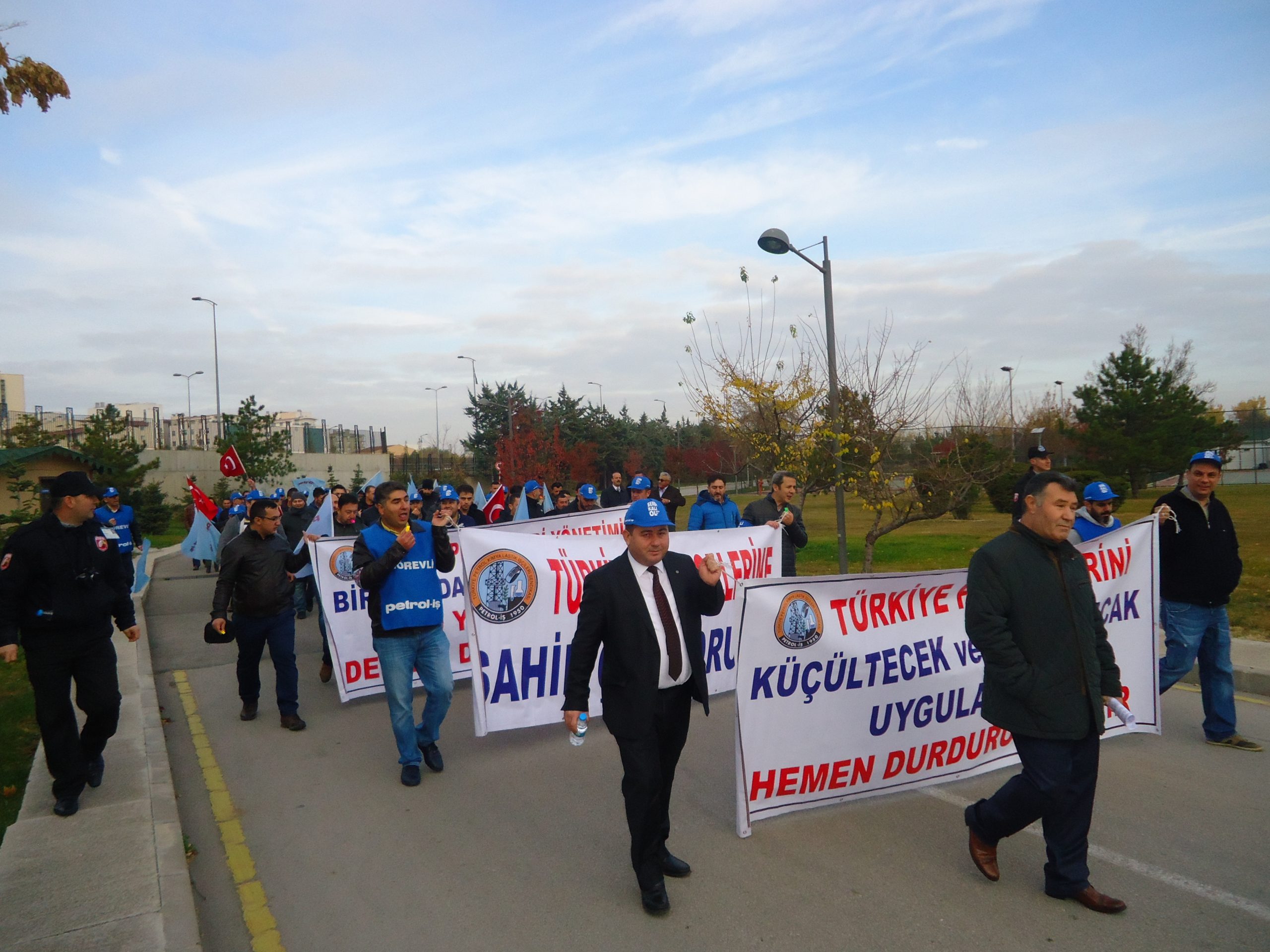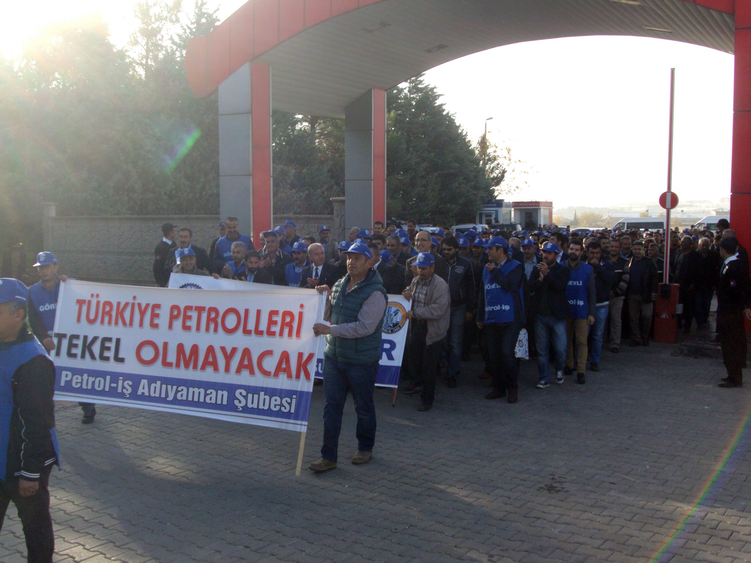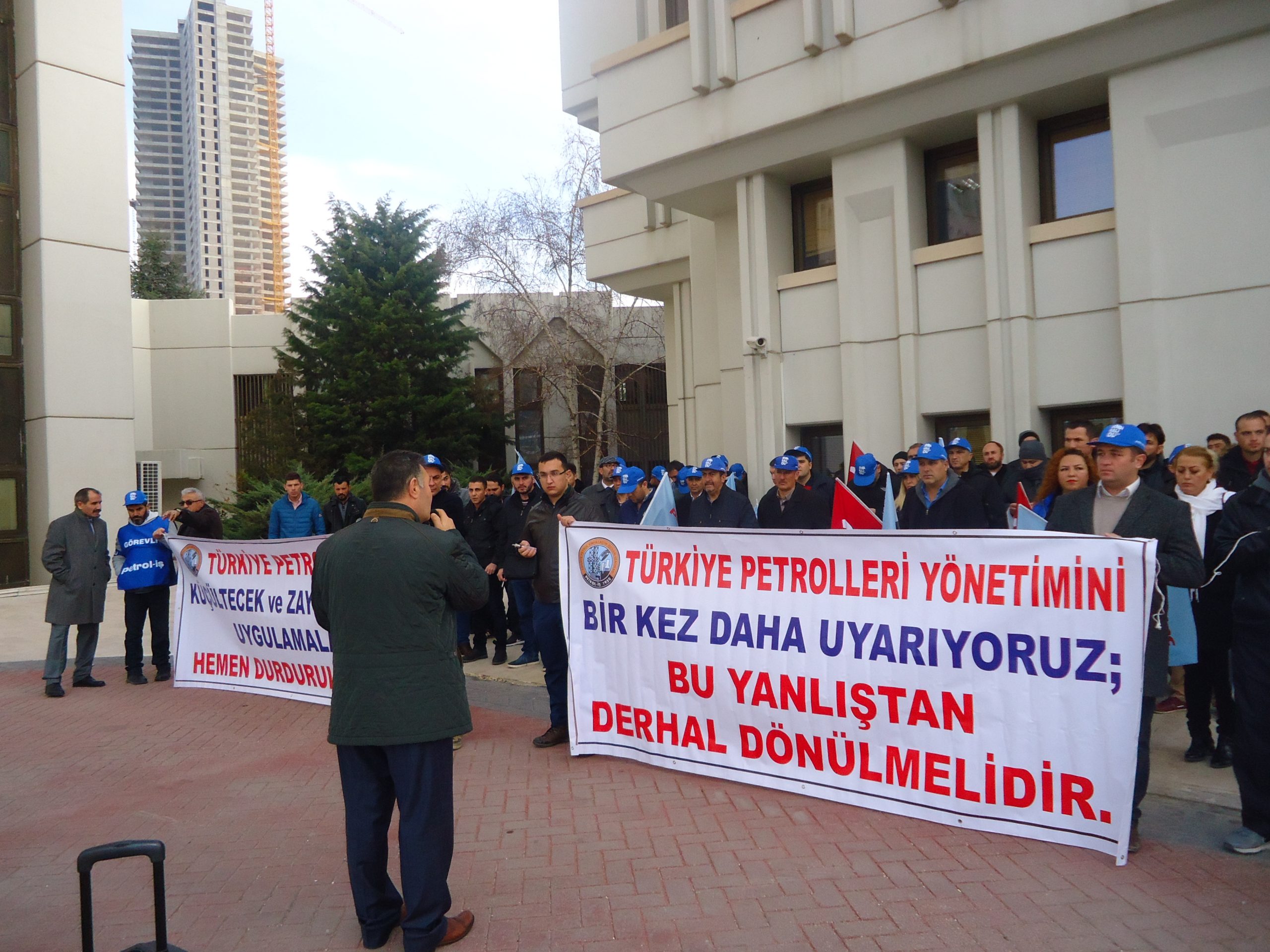 Türkiye Petrolleri’nin (TP) yürüttüğü faaliyetlerin başka şirketlere devri yoluyla küçültülmesine karşı 14 Kasım Pazartesi günü 1 günlük iş bırakma eylemi gerçekleştirildi.