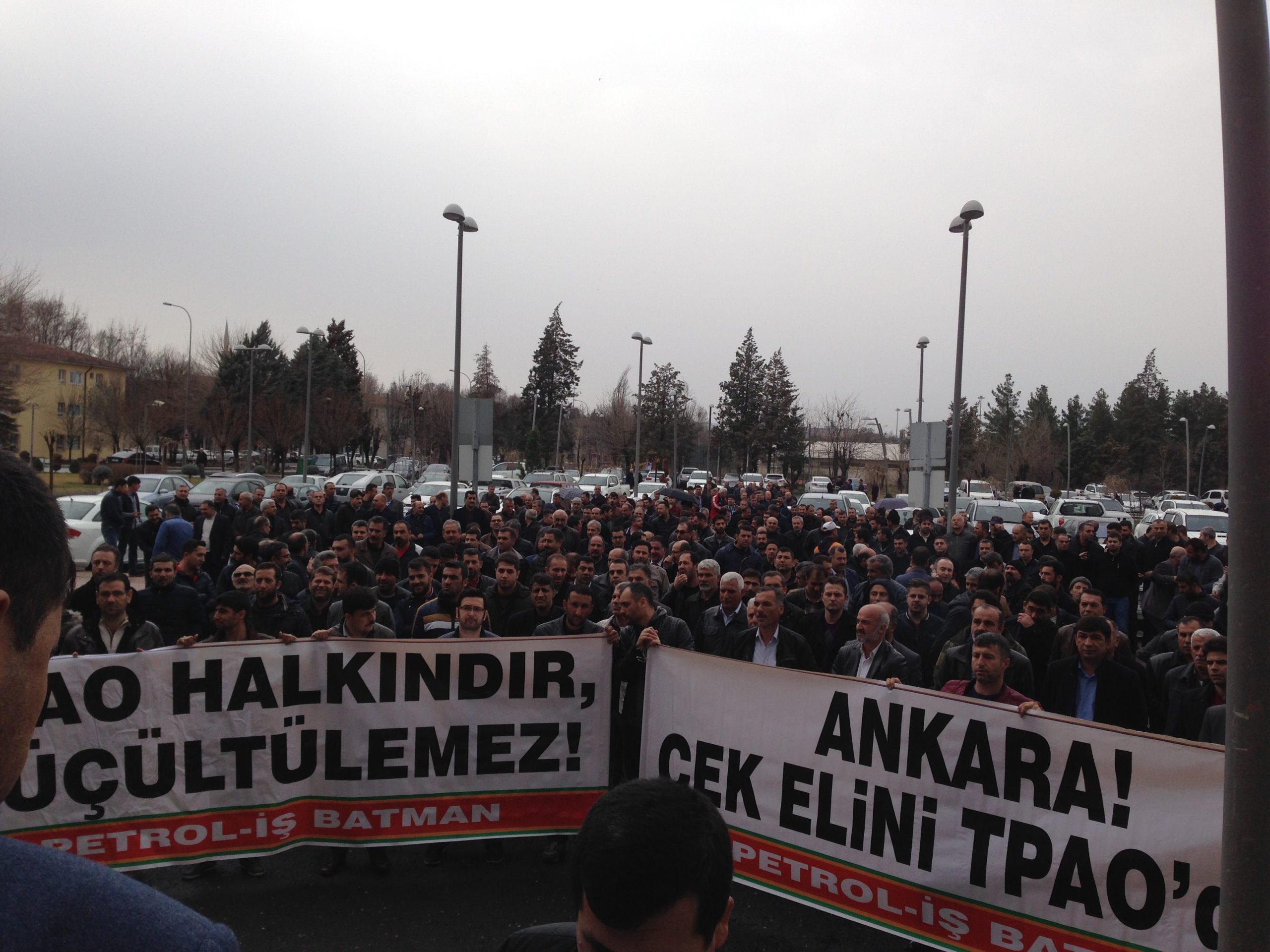 Petrol-İş Sendikası’nda örgütlü TPAO işçileri, 22 Şubat tarihinde hizmet alımları, taşeronlaştırma sistemi ve bütünsel dönüşüm programına karşı iki saat süre ile