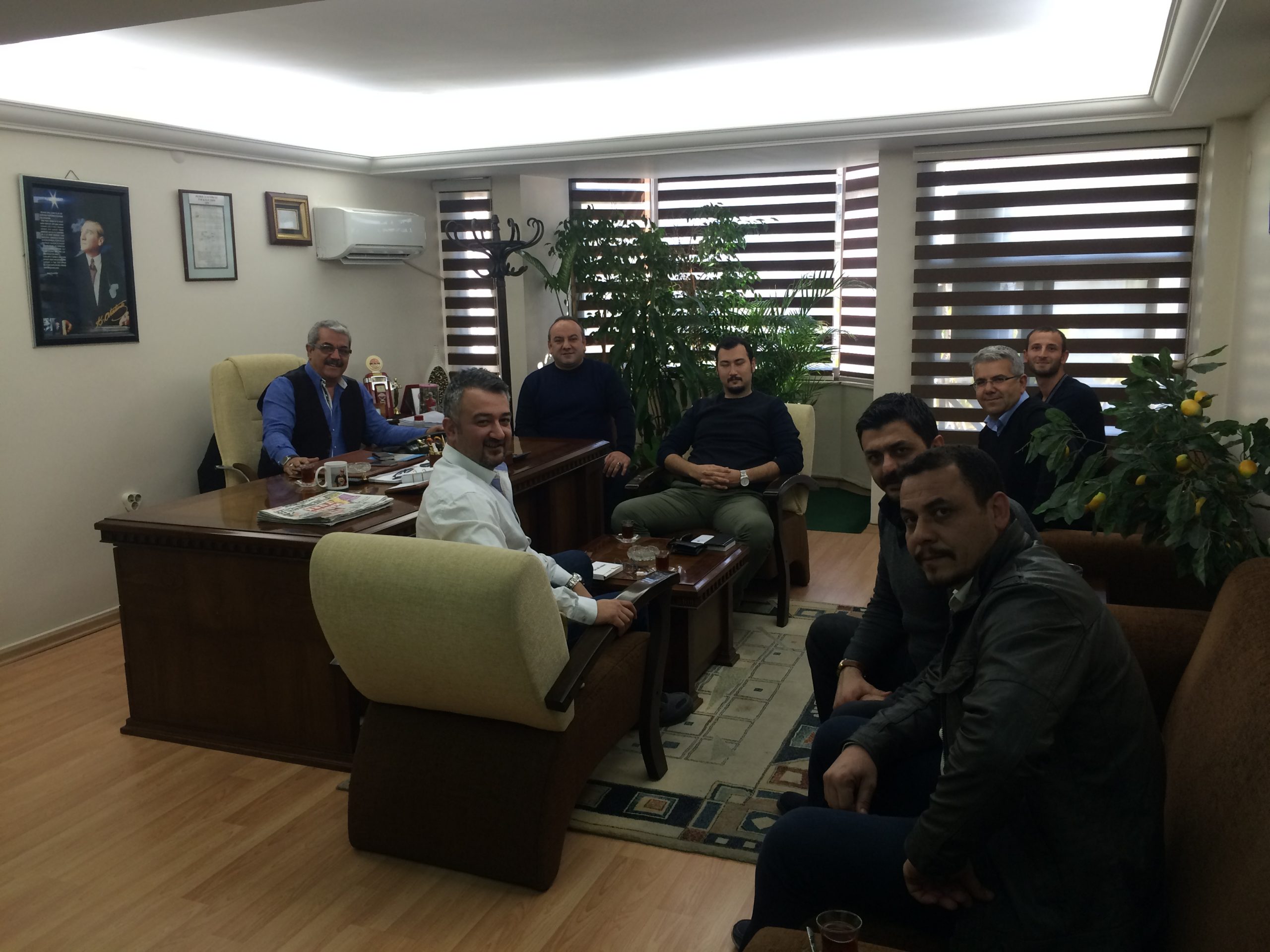 TPI A.Ş işyerimizden Üretim Bölüm Müdürleri Ertuğrul TUNÇEL, Serhat SERMEN ve Ulaş ANIL 24.Aralık.2015 tarihinde Şube Başkanımız A.Gani GÜNDOĞDU’yu makamında ziyaret ederek işyerinde ki sorunlar üzerine görüş alış verişinde bulunmuşlardır. Ziyarete şube başkan yardımcılarımız ve işyerimiz temsilcileri de katılmışlardır.
