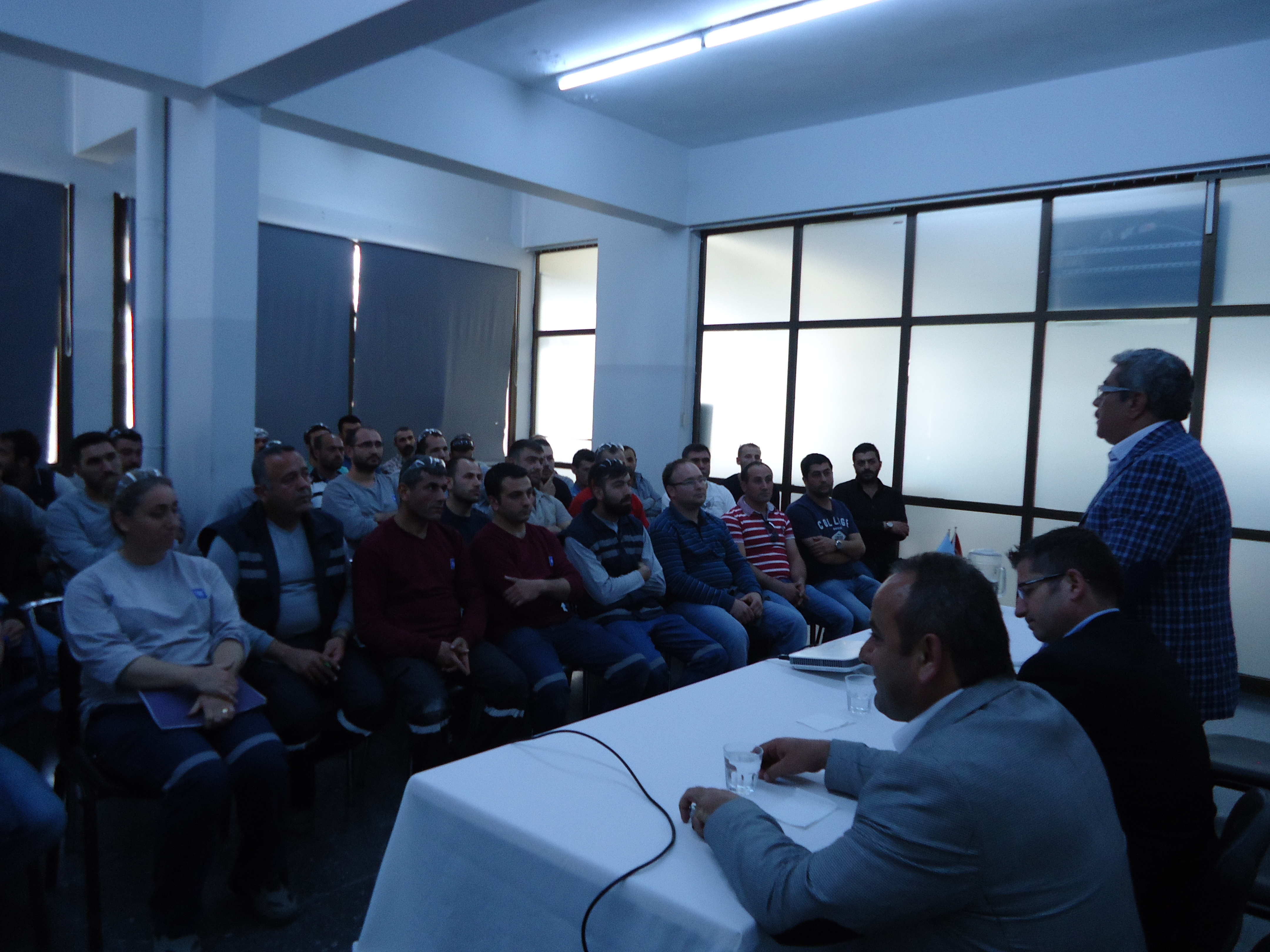Toplantının açış konuşmasını yapan Şube Başkanımız A Gani GÜNDOĞDU 30 Temmuz 2012 tarihinde 165 üyeyle örgütlenip TİS imzaladığımız iş yerimizde bir buçuk yıllık bir sürede çok çabuk bir büyüme olduğunu ve şu anda 820 üyeye ulaştığını belirtti. Dolayısıyla işyerinde başta taşıma, servis güzergahları, yemekhane, soyunma odaları ve dinlenme alanlarının yetersizliği ile ilgili sorunların olduğunu komite üyelerine ve işyeri Genel Müdürüne açıklandı.
