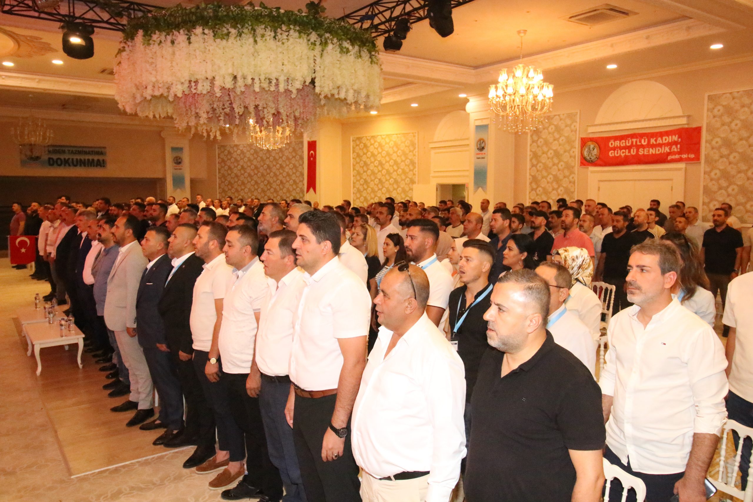 Genel Başkanımız konuşmasının devamında aşağıdaki değerlendirmeleri yaptı, “TPAO’da üyelerimizin sıkıntı yaşadıklarını biliyoruz. Siyaseten Petrol-İş’i sıkıştırmaya çalışıyorlar. Kamuda tasarruf adı altında mesai, servis ve lojman hakkı gibi birçok kalemde kısıtlamaya gidiyorlar. Tasarruf, kamu emekçisinin alın teri üzerinden yapılamaz. Bu girişimlere karşı hem saha da hem masada hem de siyaseten gerekli girişimleri yapıyoruz.” dedi.