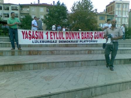 Lüleburgaz Demokrasi Platformu bileşenleri arasında yer alan Trakya Şubemiz 1 Eylül Dünya Barış Gününü Lüleburgaz Kongre Meydanı’nda üyelerimizin katılımı ile kutladı.
