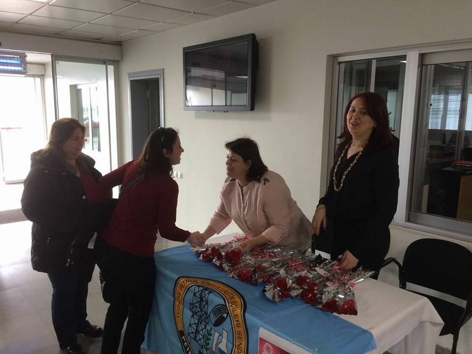 Trakya Şubemizde 8 Mart Dünya Emekçi Kadınlar Günü örgütlü olduğumuz işyerlerimizde kadın üyelerimizin katılımı ile kutlandı. Kutlamada kadın üyelerimize kırmızı karanfilller dağıtıldı.