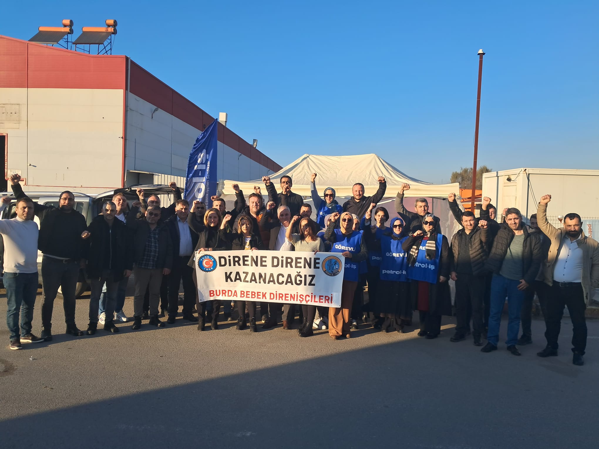 Sendikamız Genel Mali Sekreteri Mehmet Kaya, Trakya Şube Başkanımız Ümit Çetintaş ile Şube Yönetim, Denetim ve Disiplin Kurulları ile temsilcilerimizden oluşan heyet 39. gününde Burda Bebek Direnişine dayanışma ziyareti gerçekleştirdiler. Trakya Şubemizin örgütlü olduğu tüm işyerlerinden temsilcilerimizin katıldığı dayanışma ziyareti direnişte olan üyelerimiz ve Düzce Şubemiz tarafından memnuniyetle karşılandı. “Susma Haykır, Sendika Haktır” sloganlarının atıldığı alanda, Burda Bebek Direnişi’nin kararlılıkla devam edeceği mesajı verildi.