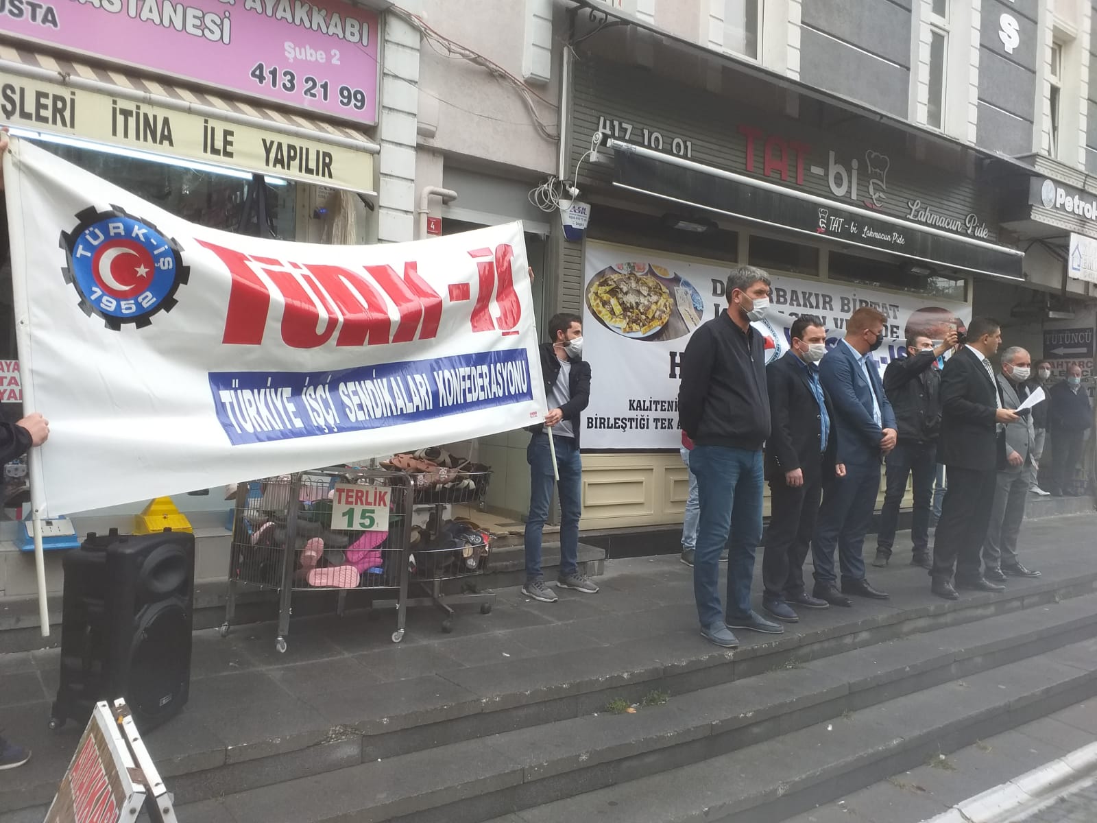 Konfederasyonumuz Türk-İş bu düzenlemeye karşı harekete geçerek, 27 Ekim Salı günü üye sendikaları ve kitle örgütlerinin de katılımıyla  tüm Türkiye’de ortak açıklama yaptı. Bugün, Lüleburgaz’da sendikamız Trakya Şubesinin de katılımıyla Torba Yasaya karşı açıklama yapıldı. Açıklamada “İstihdam Paketi” olarak kamuoyuna sunulan düzenlemenin uzun vadede bir güvencesizleştirme ve sendikasızlaştırma paketi olduğu vurgulandı, söz konusu düzenlemenin “işçiye ölümü gösterip sıtmaya razı etme” düzenlemesi olduğuna dikkat çekildi.
