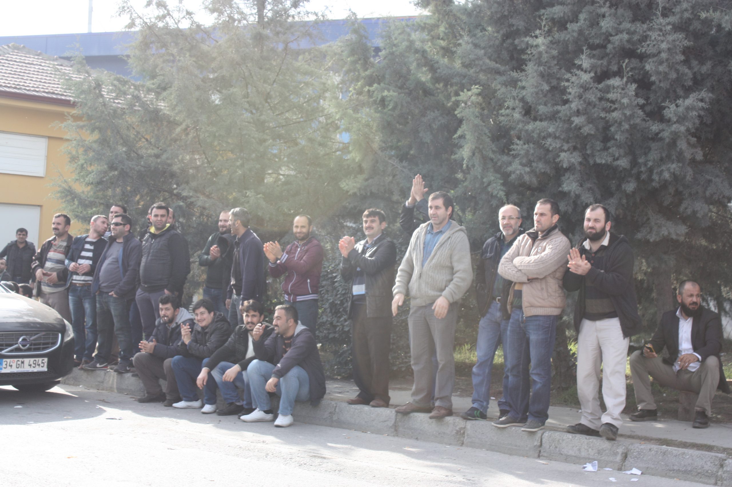 Konuşmaların ardından üretimin tamamen durduğu üç fabrikaya grev pankartları asıldı.