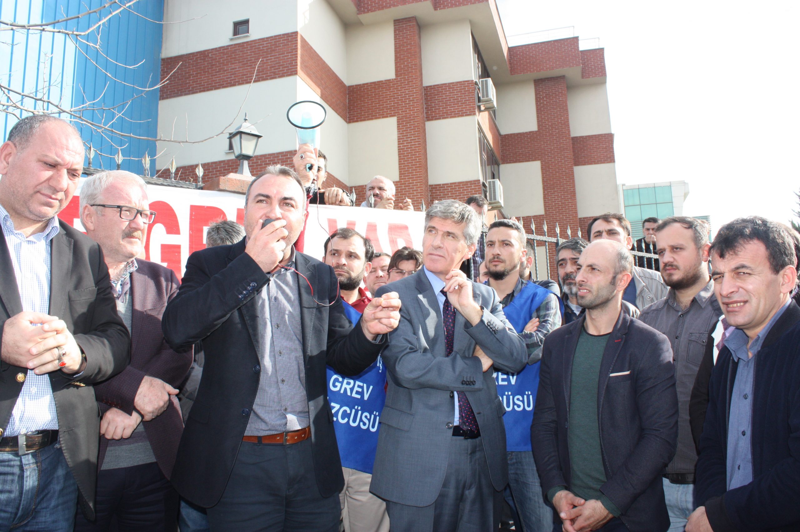 Akbulut’un ardından sözü Genel Mali Sekreterimiz Turgut Düşova alarak şunları söyledi: “Hepinizi selamlarken Merkez yönetimimiz adına grevinizi kutluyor ve tebrik ediyorum.İnançlı dayanısşma içerisinde çalışanların bu ülkede tek yasal gücü grev hakkıdır.Biz sendika olarak hiçbir zaman grevi amaç olarak görmeyiz.Petrol-iş 35bini aşkın üyesiyle ,yöneticisiyle şubeleriyle arkanızda olacak.Türkiye’nin şuan ki durumu itibariyle çlışanlar grev yapamazken sizlerin büyük bir dayanışma ve cesaret ile greve çıkmanızı yürekten kutluyorum.Umuyorum ki işveren attığı adımları revize eder ve toplu sözleşmeniz olumlu yönde sonuçlanır.Bu grev bu yönetimin ilk grevidir ve mutlaka başarıyla sonuçlanmalıdır.”