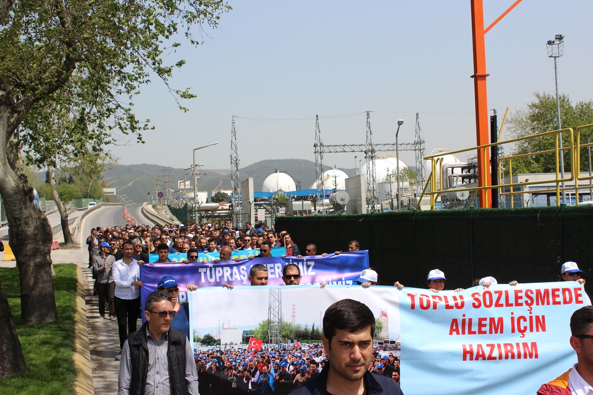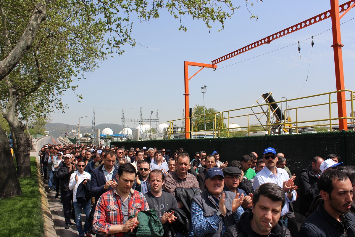 Petrol-iş Sendikası olarak Tüpraş’ta üyelerimiz eylemlere devam ediyor.Toplu İş Sözleşme görüşmelerinde işveren temsilcileri ile yapılan toplantılarda herhangi bir netice alınamaması nedeniyle dün (24 Nisan 2019) yapılan tam gün iş bırakma eyleminden sonra bugün de İzmit, Aliağa, Kırıkkale ve Batman Rafinerilerinde çalışan üyelerimiz eş zamanlı yarım gün iş bırakma eylemi yaptılar.