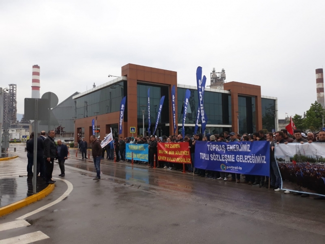 Sendikamız ile Tüpraş işvereni arasında devam eden TİS görüşmelerinin Arabulucu sürecine girmesi ve Arabulucu toplantısından da herhangi bir olumlu sonuç çıkmaması nedeniyle gerçekleştirdiğimiz 1 günlük iş bırakma eylemleri 10 Mayıs 2019 tarihinde de sağanak yağmura rağmen devam etti.