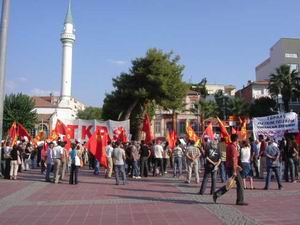 TÜPRAŞ İZMİR RAFİNERİSİ’NDE EYLEMBugün (27 Ağustos 2005 ) Aliağa’daki İzmir Rafinerisi giriş kapısı önünde, saat 16.00’da “Yurtsever Cephe” kitlesel basın açıklaması düzenledi.İçinde çeşitli siyasi parti, dernek, sendika ve meslek odası temsilcilerinin bulunduğu “Yurtsever Cephe İzmir İnisiyatifi”ne mensup yaklaşık beş yüz kişi, saat 16.00 sıralarında İzmir’den otobüslerle Rafineri önüne geldi.