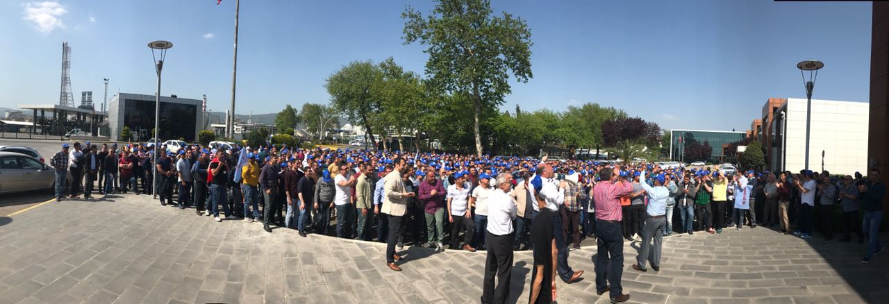 Kocaeli Şubemizin örgütlü olduğu Tüpraş İzmit Rafinerisi’nde TİS görüşmelerinin işverenin dayatmaları ile çıkmaza girmesi sonucu 3 Mayıs 2017 tarihinde 1 günlük iş bırakma eylemi yapıldı. Kocaeli Şube Başkanımız Salih Akduman fabrika önünde toplanan üyelerimize işverenle yapılan müzakereler sonucunda TİS’in anlaşma sağlanamadığı maddeleri hakkında açıklamalarda bulundu.