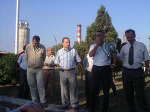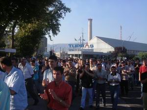 TÜPRAŞ’IN SATIŞ İHALESİ PROTESTO EDİLDİTüpraş ve Petkim işçisinden iş bırakma eylemi12.09.2005Tüpraş’ın satış ihalesi, tüm rafinerilerde ve Yarımca Petro-Kimya tesisleri ile Petkim’de tam gün iş bırakma eylemleriyle protesto edildi.Tüpraş’ın Aliağa, Kırıkkale, Kocaeli ve Batman’da kurulu 4 rafinerisi ile Yarımca Petro-Kimya tesislerinde çalışan Petrol-İş üyesi işçiler tam gün iş bırakma eylemleriyle Tüpraş ihalesini protesto ettiler.Petkim çalışanı Petrol-İş üyesi işçiler de Tüpraş çalışanlarına destek vererek tam gün iş bıraktılar.Ankara’da da Türk-İş yöneticileri, siyasi partiler, sendikalar, demokratik kitle örgütleri ve sendikamız yöneticileri ile üyelerimizin katıldığı kitlesel basın açıklaması yapıldı.Petrol-İş üyesi Tüpraş işçilerinin tam gün iş bırakmaları ile 4 rafineri de kara ve deniz tankerlerine akaryakıt LPG dolum ve satışı yapılmadı. Pazartesi günü Tüpraş’tan Petro-kimya ürünlerinin satış ve sevkiyatı da durdu.Petrol-İş üyesi Tüpraş ve Petkim çalışanları bu sabah erken saatlerde tesislerin önünde bir araya geldiler. Petrol-İş üyesi işçilere hitaben sendikamız şube başkanları birer konuşma yaptılar. Şube başkanlarının yaptıkları konuşmaların ardından, şube yöneticileri ve Tüpraş çalışanlarının bir kısmı otobüslerde, alkışlarla Ankara’ya uğurlandı. Aliağa işçileri ise Özelleştirme İdaresinin önündeki protesto eyleminden sonra ihalenin yapıldığı Bilkent’e giderek, ihale sonuçlanıncaya kadar protesto eylemlerini sürdürdüler.Gün boyunca satış ihalesini “Tüpraş’ı satma, yenisini kuralım’’, “Tüpraş geleceğimizdir satılamaz’’, “Tüpraş’a uzanan eller kırılsın’’ şeklinde sloganlar atarak protesto eden Tüpraş işçileri, iş bırakma eyleminin bitiminde, eş ve çocuklarının katılımıyla 4 bölgede kurulan memleket çadırlarını ziyaret ettiler.Kamuoyuna saygıyla duyurulur. Petrol-İş Sendikası Merkez Yönetim Kurulu