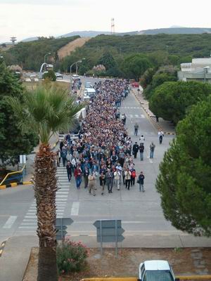 Petrol-iş Sendikası Merkez Yöneticileri ve Tüpraş işçileri TBMM CHP Grup toplantısına katılmak üzere Ankara’ya gittiler.Petrol-iş Sendikası işyeri Aliağa, Kırıkkale, Kocaeli, Batman Rafinerilerinde çalışanlar ve Petkim işçileri iş bırakarak eylem yaptılar.Aliağa’da sabah işe gelen Tüpraş ve Petkim işçileri kapı önünde toplanarak, işbaşı yapmadılar.Petkim (A) kapısı önünde toplanan işçilere hitaben konuşma yapan Şube Başkanı İbrahim DOĞANGÜL;Tüpraş’ın KOÇ grubuna satılmasına bazı çevreler yerli sermayeye gitti diye ses çıkarmayıp onaylıyorlar. Biz soruyoruz Koç Holding’in neresi yerli. Shell ile yapılan ortaklık niye o zaman. Shell’de ki pay % 10’da kalır mı sizce. İMKB’de Mart ayında satılan 14,76’lık hissenin nasıl satıldığını hepimiz biliyoruz. Sami Ofer denilen işadamına 1.2 milyar dolar para kazandırdılar.Yapılan bu yanlışlıkların herzaman karşısında olmaya devam edeceğiz. Petrol-İş olarak tek başımıza kalsak dahi sonuna kadar mücadele edeceğiz dedi.Yapılan basın açıklamasından sonra Petkim işçileri saat 10:00’da işbaşı yaptılar. Tüpraş çalışanları eylemlerine saat 12’ye kadar yarım gün işbaşı yapmayarak devam ettiler. Eylem süresince tüm Tüpraş’lardan dolum, sevkiyat ve satış işlemi durduruldu.