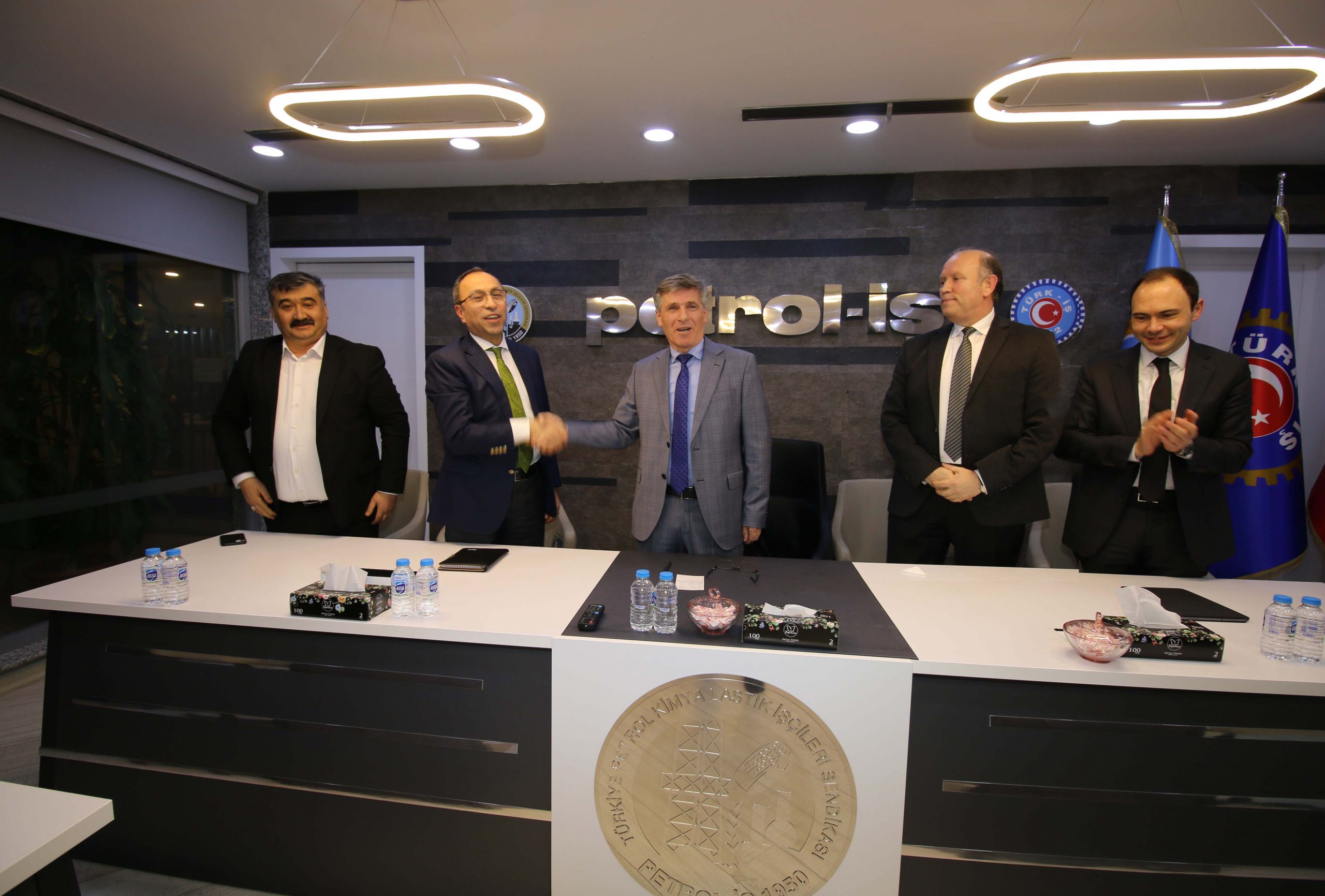 Dün sendikamız Genel Merkezinde sabah 10.00’da başlayan toplantı, akşam 22.00’de anlaşma ile sona erdi. Sözleşmenin imzalanmasının ardından sendikamız Genel Başkanı Süleyman Akyüz ve TÜPRAŞ Genel Müdürü İbrahim Yelmenoğlu sözleşmenin iki tarafa da hayırlı olmasını dilediler.