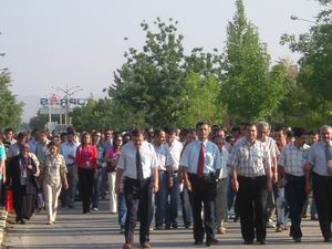 TÜPRAŞ’ TA EYLEM GÜNÜ01.09.2004 Geçtiğimiz hafta basın açıklamasıyla AKP’ nin TÜPRAŞ’ ta kadrolaşma içerisinde olduğunu kamuoyu ile paylaşmıştık.TÜPRAŞ özelleştirmesi sürecinde her vesilede kamu kuruluşlarının kambur olduğunu,arpalık olduğunu söyleyen siyasiler bugün kendileri aynı uygulamayı yapmaktadırlar.Geçen hafta belirttiğimiz gibi bir takım insanlar gerekli vasıflar oluşmadan İNGE Üyesi yapılarak müdür maaşı ile ödüllendirilirken, Batman’dan tayinle gelen bir başka şef önce İNGE üyeliğine,oradan dabölüm müdüryardımcısı yapılarak(fazla mesai)maddi imkanlardan yararlandırılmıştır.Kırıkkale MilletvekiliSn. Murat Yılmazer’ inkardeşi de Rafineri Müdür Yardımcısı yapılarak, AKP’ nin de geçmiş hükümetlerin KİT’lerde yaptığının aynısını devam ettirdiği ortaya çıkmıştır.Petrol-İş Sendikası olarak bu olumsuzluklara asla seyirci kalamayız. Türkiye’nin en büyük kuruluşu olan TÜPRAŞ’ ın MKEK’ ye dönüşmesine Tüpraş’ ın buharlaştırılmasına siyasi malzeme yapılmasına karşı TÜPRAŞ İşçisi tepkisini göstermiştir.Tepkili işçiler bugün sabah saat 08.00’de Rafineri ön girişinde otobüslerden inerek rafineri idari binasına kadar yürüdüler. İdari bina önünde toplanan işçilere hitaben Şube Başkanı Recep Sefer bir konuşma yaptı.Recep SEFER konuşmasında KİT’lerin asıl sahibinin halk olduğunu,işçiler olduğunu belirterek buralardaki tüm olumsuzlukların kendilerini ilgilendirdiğini, KİT’lerin siyasilerin yandaş kayırma mekanları olmadığını, buralarda tüyü bitmemiş yetimlerin hakkı olduğunu,Türkiye’ de bunca İŞSİZ var iken siyasilerin kendi eş, dost, akrabalarına daha fazla imkan sağlamalarına göz yummayacaklarını ve bu uygulamaların devamında daha sert eylemlere başvuracaklarını belirtti. Yapılan uygulamalar işçiler tarafından alkışlarla protesto edildi.İşçiler daha sonra sessizce dağıtıldı. Petrol-İş Sendikası olarak kamuoyunun da bu konuda hassasiyet göstermesini bekliyor.Geçmişte kamuoyu duyarsızlığı sonucu Türkiye’nin gözde bir çok kuruluşu benzer yöntemlerle yok edildi.Her konuda seyirci kalan kamuoyu şunu bilmelidir ki tüm olumsuzlukların faturası kendilerine çıkacaktır. Herkesin yaptığı yanına kar kalmamalıdır.Kırıkkale Milletvekilleri TÜPRAŞ’ a yandaş ataması yapmak yerine Rafinerinin yeni yatırımlarıyla, yenilenmesi ve kapasitesinin artırılması ile ilgilenseler daha iyi olacağı kanaatimizi kamuoyu ile paylaşırız. Petrol-İş sendikasıKırıkkale Şube Yönetim Kurulu Adına Başkan Recep Sefer