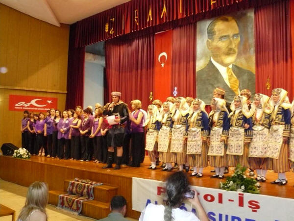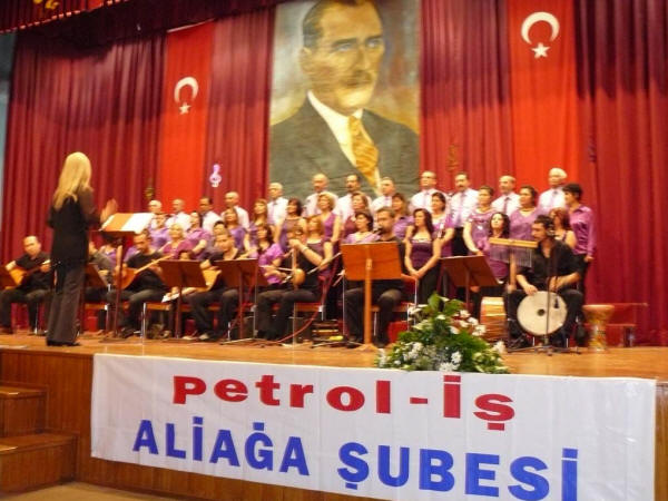 Değerli Arkadaşlar,Şubemizin sosyal ve kültürel etkinlikler kapsamında düzenlemiş olduğu, Türk Halk Müziği Korosu ve Halk Oyunları kurslarına yaklaşık bir yıldır devam eden arkadaşlarımız, çalışmalarının ürünlerini bir gösteriyle Petkim Kültür Merkezin’de sundular.Her şeyin hızla değiştiği ve yok olduğu bir zamanda, kendi kültürümüze ait şeyleri yaşatmayı ve gelecek kuşaklara da bu değerleri aktarmayı çok önemsiyoruz. Şef Naile Pak yönetimindeki koromuz, yurdumuzun her yerinden derlenmiş türkülerle dinleyenlere çok güzel bir türkü ziyafeti sundular.