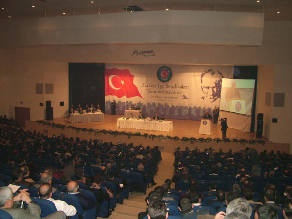 Sendikamız Genel Başkanı Mustafa Öztaşkın’ın da Genel Teşkilatlandırma Sekreteri olarak Türk-İş Genel Başkanı Salih Kılıç’ın listesinden aday olduğu Türk-İş’in 20. Olağan Genel Kurulu, 6-9 Aralık tarihlerinde Ankara’da yapıldı. Genel Kurula Cumhurbaşkanı Abdullah Gül, TBMM Başkanı Köksal Toptan, Başbakan Recep Tayyip Erdoğan, bakanlar, milletvekilleri, siyasi parti lider ve yöneticileri, demokratik kitle kuruluşlarının temsilci ve yöneticileri ile sendika genel başkan ve yöneticileri ile çok sayıda davetli katıldı.