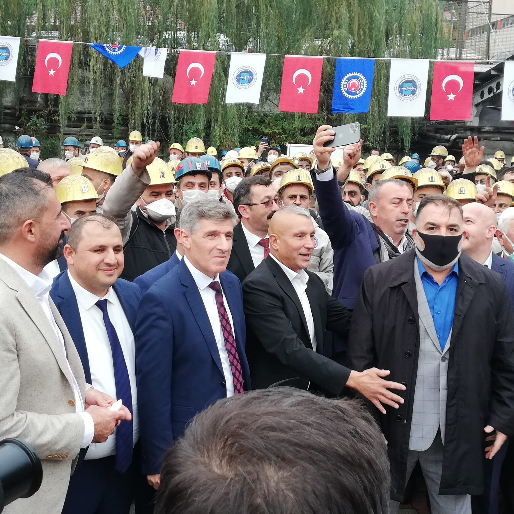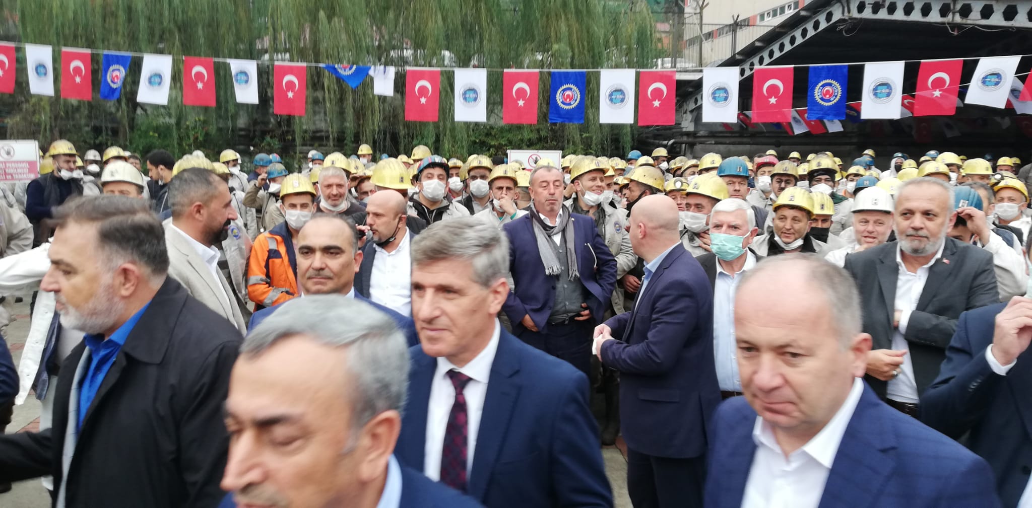 Türk-İş Genel Başkanı Ergün Atalay burada yaptığı konuşmasında, “1 milyon 200 bin üye 5 milyonluk aile adına bugün Türk-İş’e bağlı 16 sendikanın genel başkanı burada. Hepinizi onlar adına selamlıyorum. Ben evime geldim. İyi günde de zor günde de her fırsatta sizlerle beraber olmaya gayret ettim. Her zaman ifade ediyorum. 2013’te Türk-İş’e Başkanı oldum. Bu bölge 5 bin maden şehidi verdi. Bu ülkenin altı da vatan, üstü de vatan. Denizi de ormanı da vatan. Biz bu vatanın evlatlarıyız. Geçen dönem bin 500 civarı Maden işçisi işe girdi. Bakanım en son işçi alındıktan sonra bin 900’a yakın arkadaşımız emekli oldu. Elzem şekilde en kısa zamanda bununla ilgili Hazine Bakanı, Enerji Bakanı ve Cumhurbaşkanımızdan talep ediyoruz, bölgenin işçiye ihtiyacı var. Türkiye’nin de bu bölgeye ihtiyacı var” diye konuştu.