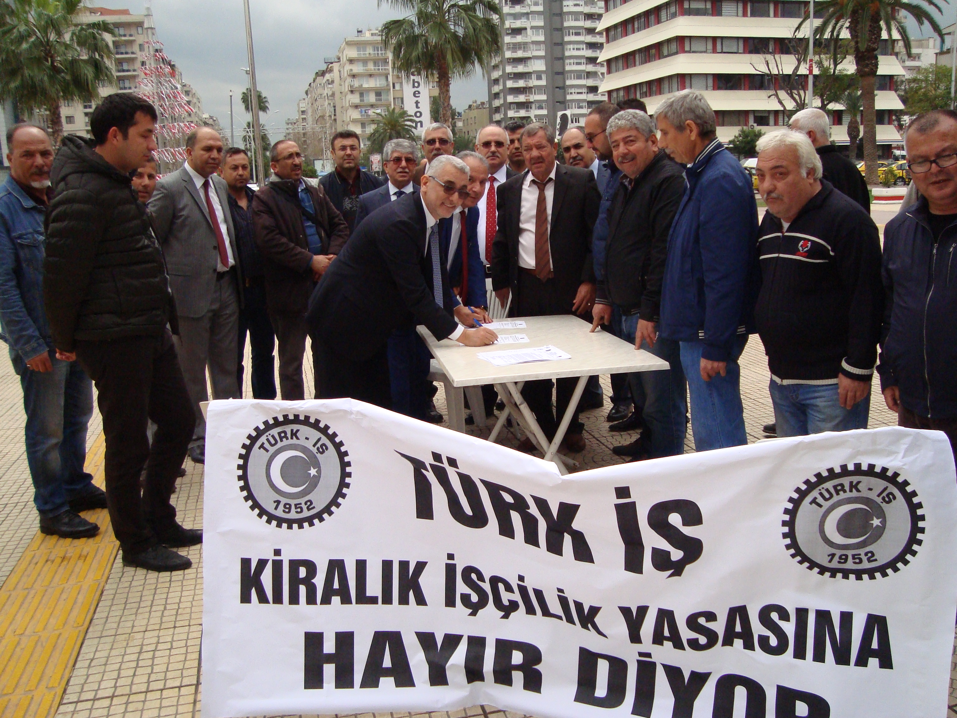 Konfederasyonumuz Türk-İş’in yeni çıkarılmak istenen Kiralık işçi yasa tasarısına karşı imza kampanyası ve basın açıklamasının 3. sü 03.03.2016 tarihinde Adana Uğur Mumcu meydanında yapıldı. Burada yapılan imza kampanyası ve basın açıklamasına Genel Başkanımız Ali Ufuk YAŞAR, Genel Sekreterimiz Ahmet KABACA, şube yönetici, temsilcilerimiz ve şubemize bağlı iş yerlerinden üyelerimiz katılarak destek verdi.