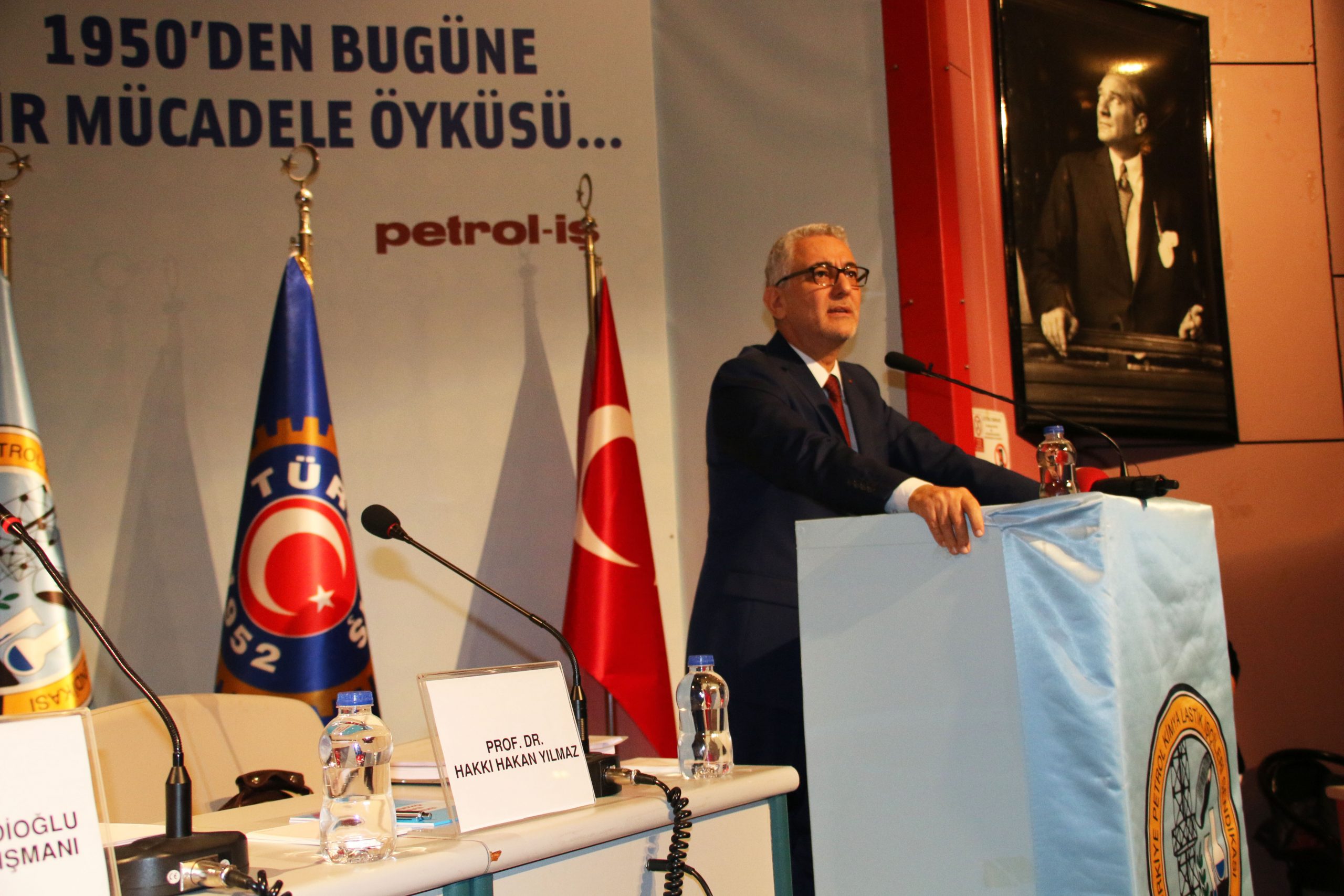 Konferans saygı duruşu ve İstiklal Marşı’nın ardından Genel Başkanımız Ali Ufuk Yaşar’ın açılış konuşması ile başladı. Genel Başkanımız Ali Ufuk Yaşar “ Konfederasyonumuz Türk-İş’in Genel Başkanı, çok değerli katılımcılar, konuklar ve akademisyenler size şahsım ve Petrol-İş Merkez Yönetim Kurulumuz adına hoşgeldiniz diyor, sizleri saygı ve sevgi ile selamlıyorum.” dedi.