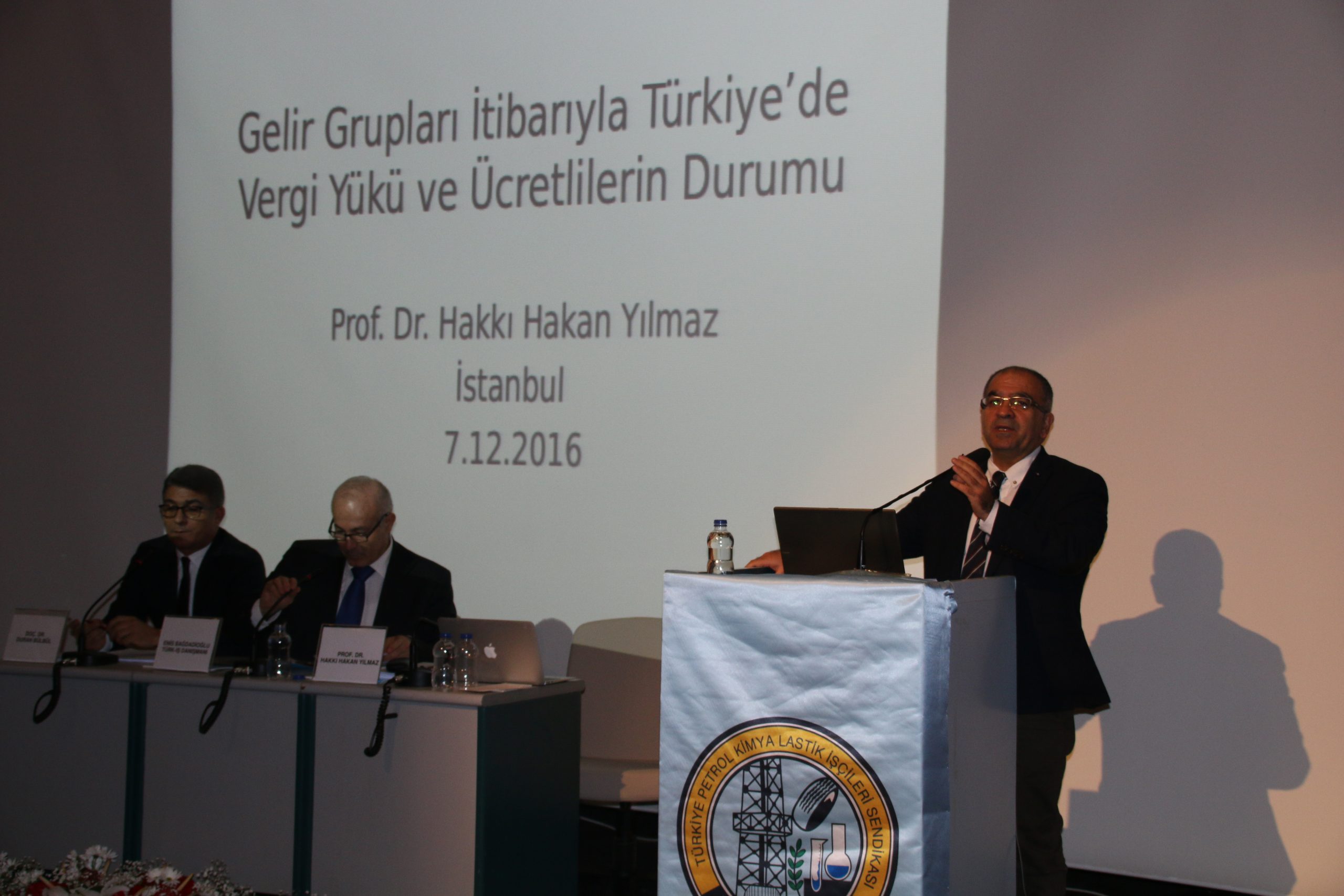 Bülbül’ün “Türk vergi sisteminin yapısı ve ücretlerin vergilendirilmesi” başlıklı sunumunun ardından, Prof. Dr. Hakkı Hakan Yılmaz “Gelir grupları itibarıyla Türkiye’de vergi yükü ve ücretlilerin durumu” başlıklı sunumunu gerçekleştirdi.
