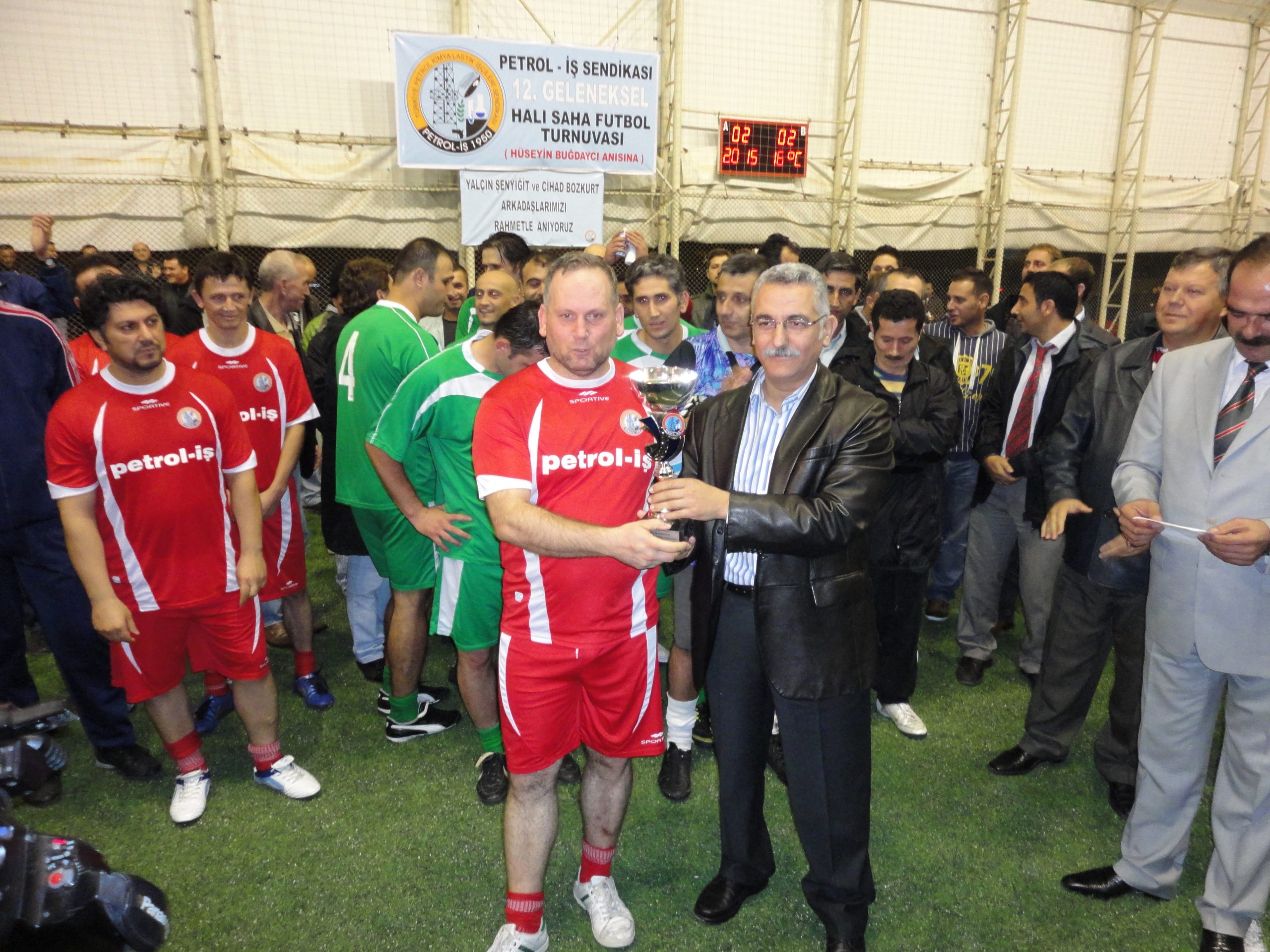 Kayan’ın konuşmasının ardından kupa töreni gerçekleştirildi. Turnuvayı kazanan takım olan BAĞFAŞ, birincilik kupasını Bandırma Belediye Başkan Yardımcısı Ozan Onur’un elinden aldı. Turnuvada 2. olan BORAKS’a ödülünü Petrol-iş Genel Sekreteri Ali Ufuk Yaşar, 3. olan MEMURLAR’a Genel Yönetim Sekreteri Ahmet Kabaca ve 4. olan ASİTBORİK’a da Bandırma Kent Konseyi Başkanı Dr. Selim Panç kupalarını verirken; turnuvanın gol kralına, turnuva boyunca hiç kart görmeyen centilmen takımına, hiç gol yemeyen kalecisine ve maçları yöneten hakemlere ödül verildi. Bandırma Petrol-İş Başkanı İsmail Kayan Duru Halı Saha Tesisleri sahibi Ömer Duruer’e de sahanın kendilerine tahsisi konusunda yardımcı olduğu için teşekkür ederek plaket verdi.