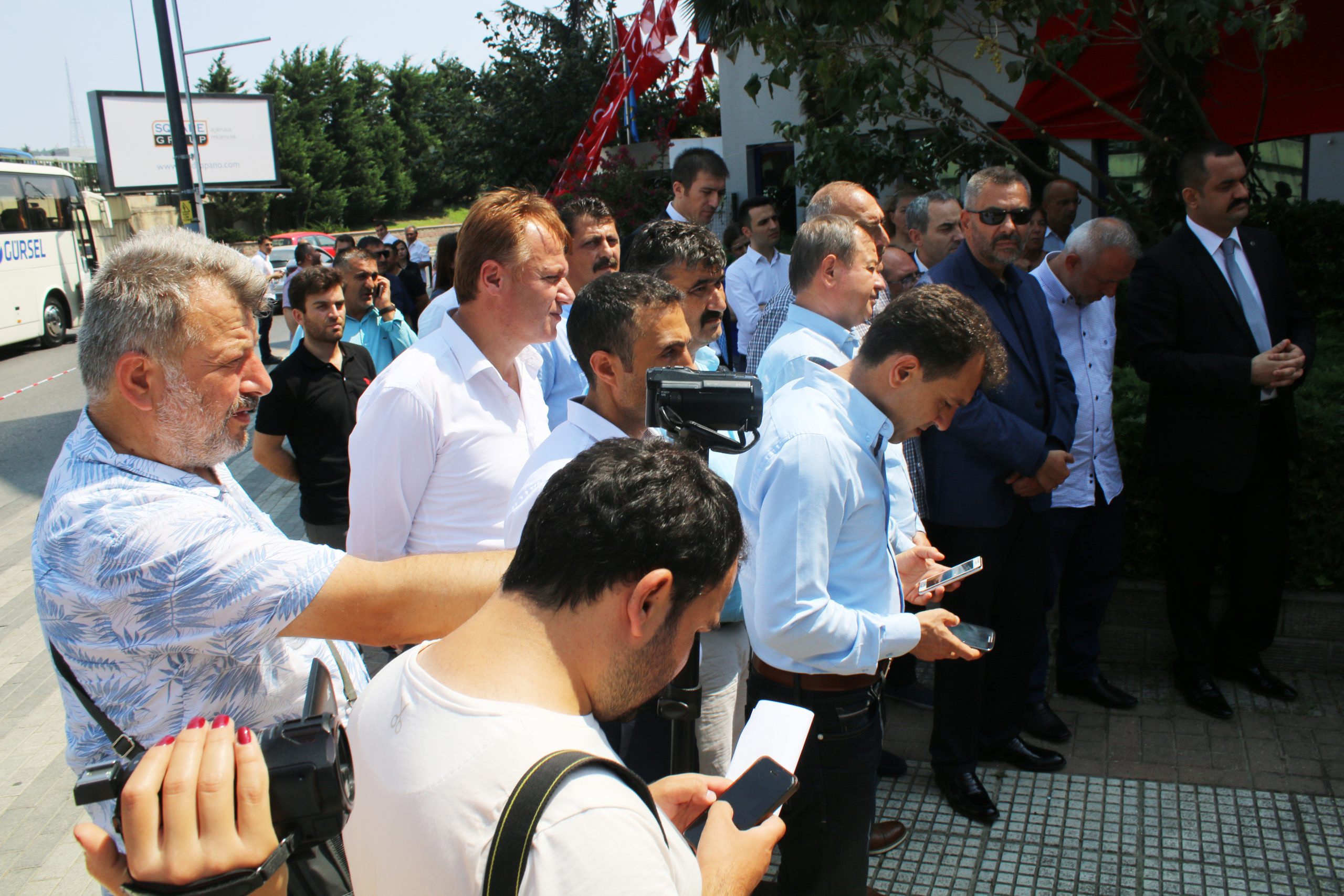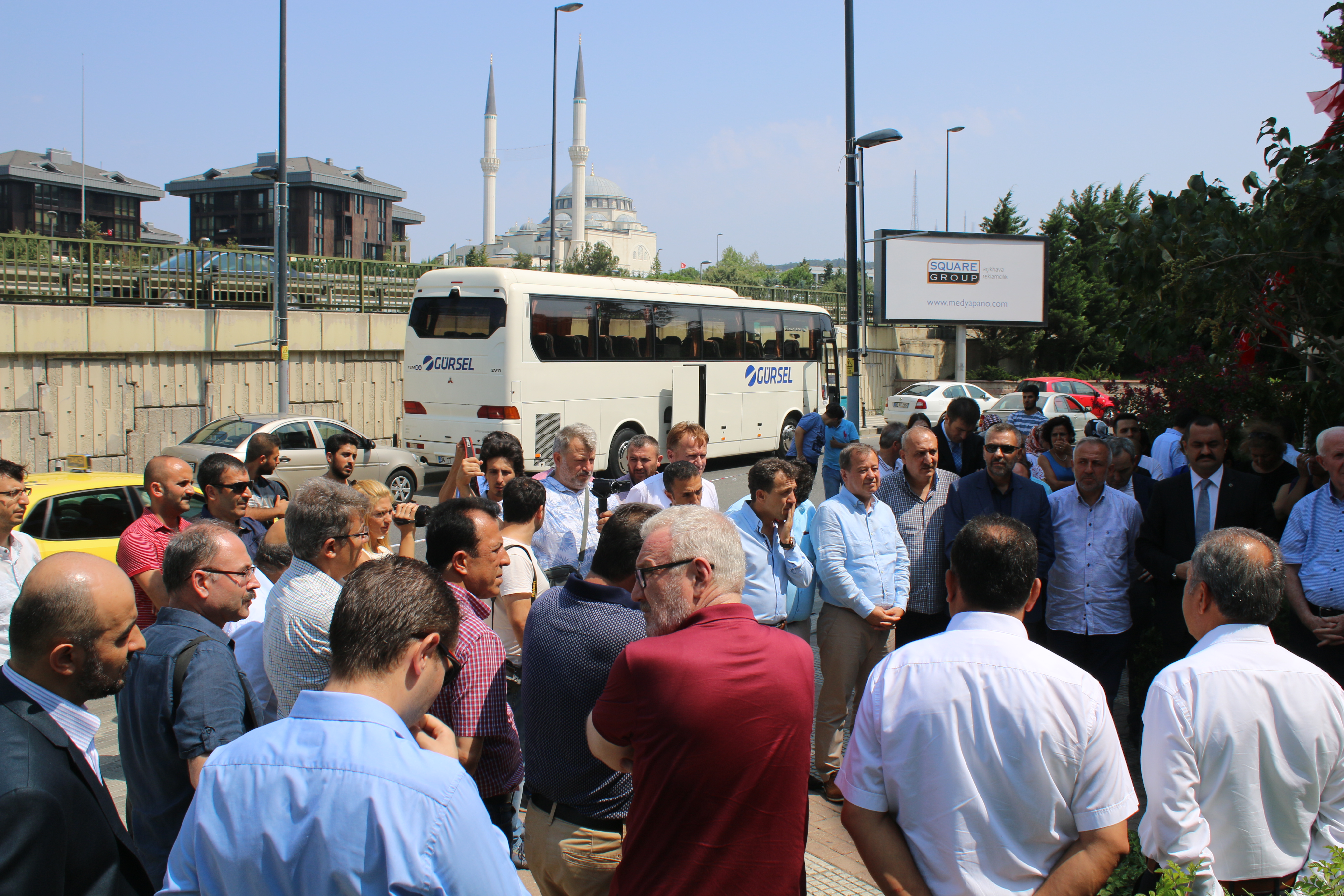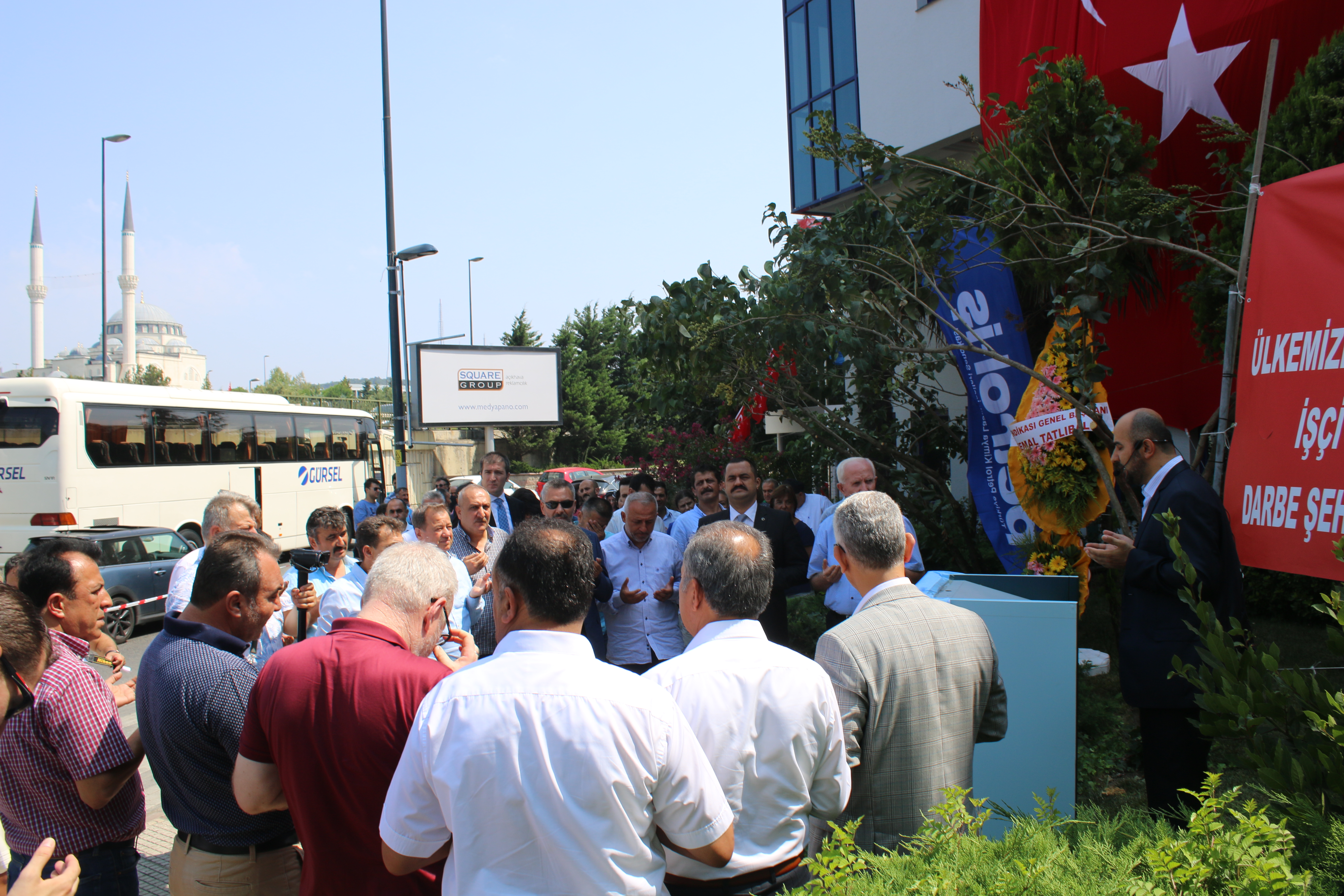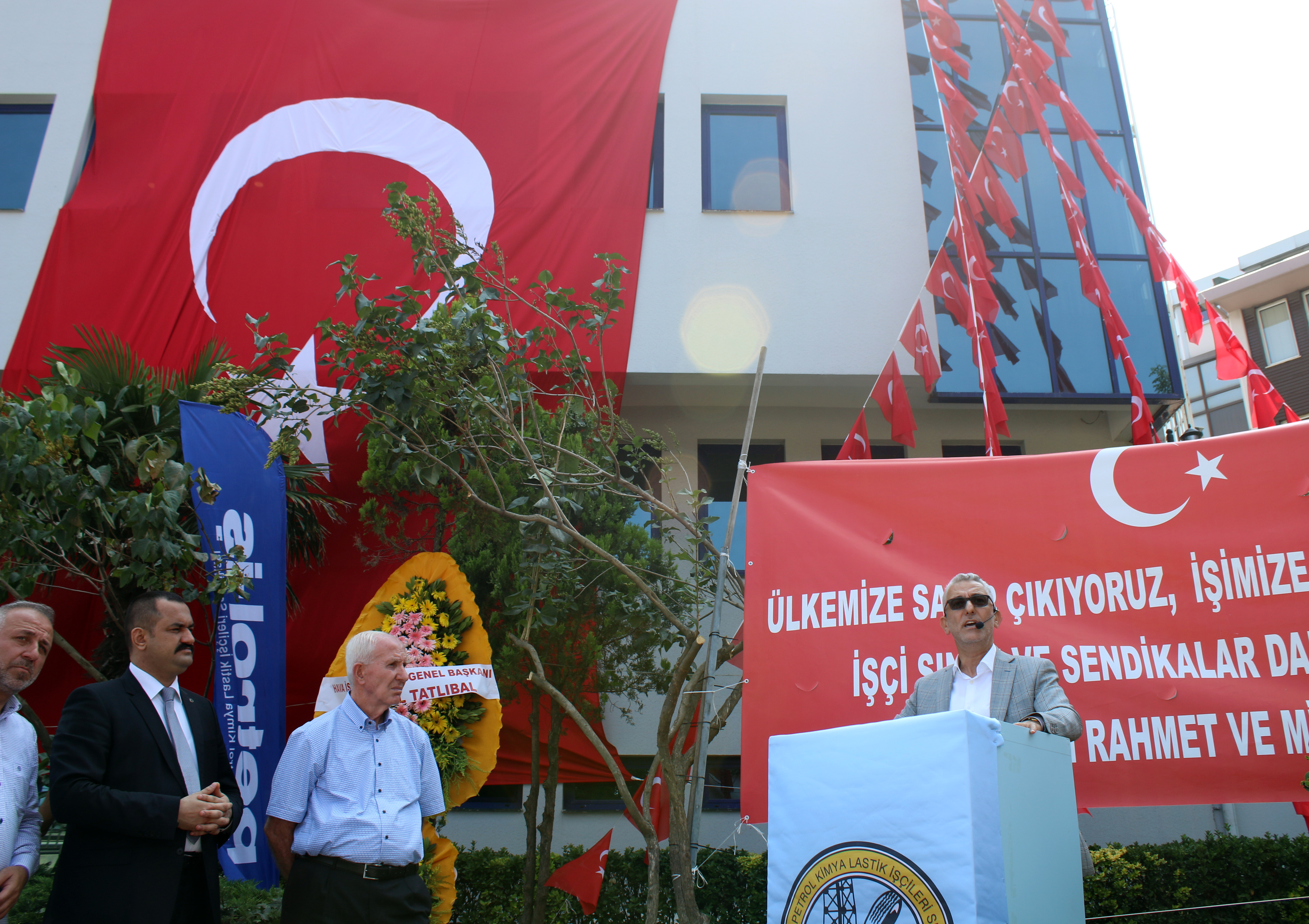 Genel Başkanımız Ali Ufuk Yaşar 1 Ağustos Pazartesi günü Petrol-İş Genel Merkezi önünde milletimizin iradesi yok sayılarak, demokratik düzeni yıkmak amacı ile gerçekleştirilen hain darbe girişimi ile ilgili basın açıklaması yaptı. Basın açıklamasında Genel Sekreterimiz Ahmet Kabaca, Genel Mali Sekreterimiz Turgut Düşova, Genel Yönetim Sekreterimiz Ünal Akbulut, Türk-İş İstanbul 1. Bölge Temsicisi Adnan Uyar, Dok Gemi – İş Sendikası Genel Başkanı Necip Nalbantoğlu, BASS Sendikası Genel Sekreteri Mustafa Eren, Türkiye Denizciler Sendikası Genel Başkanı Hasan Pekdemir, Güvenlik-İş İstanbul İl Temsilcisi Ramazan Parlak, UHİM Yönetim Kurulu Başkanı Ayhan Küçük, UHİM Hukuk Direktörü Av. Mustafa Demiral, Üsküdar Belediye Başkan Danışmanı Sadık Albayrak, Türk-İş’e bağlı sendikaların Şube Başkanları ve Yöneticileri, sendikamızın İstanbul Şube Başkanları ve Yöneticileri yer aldı.