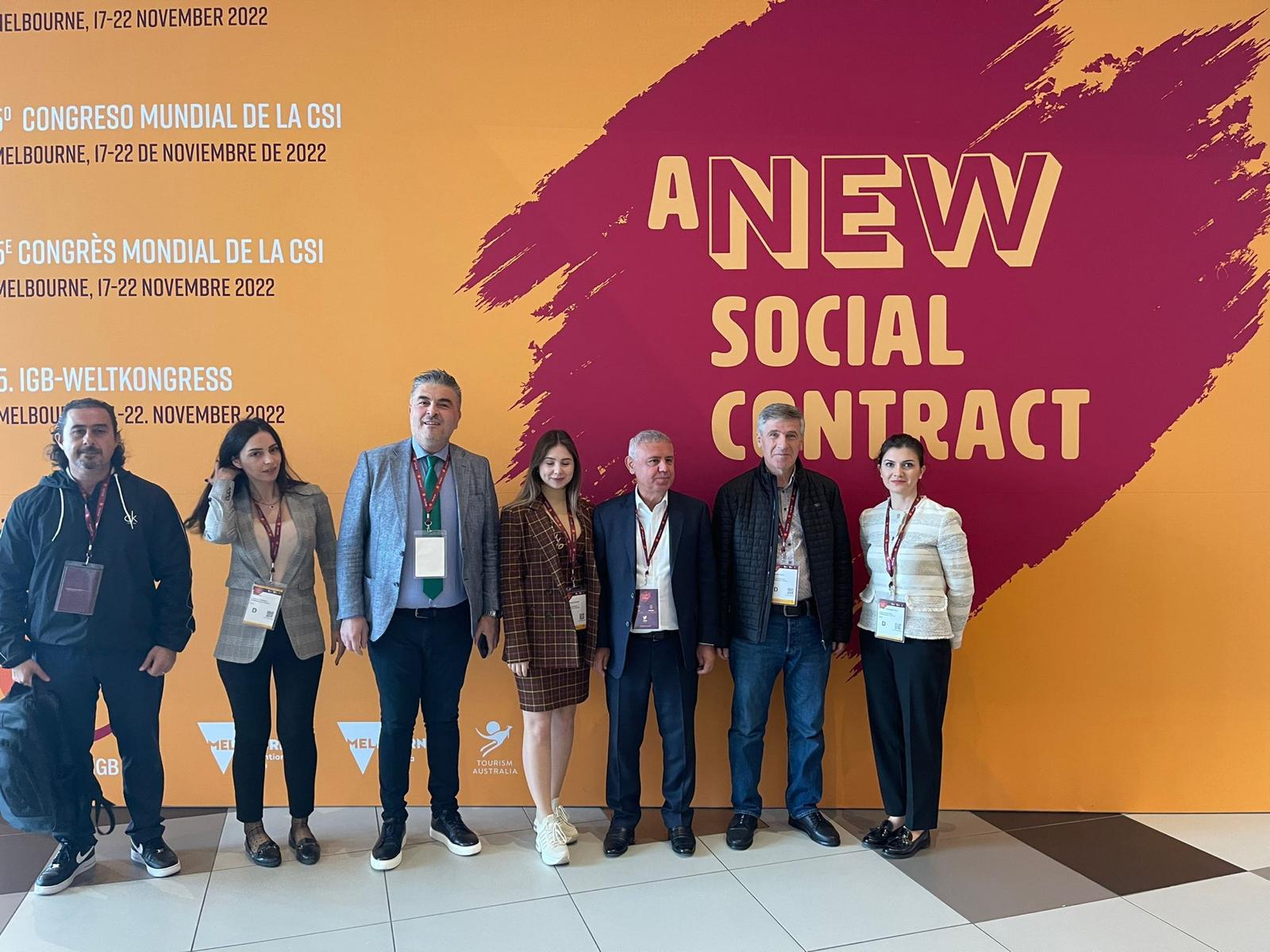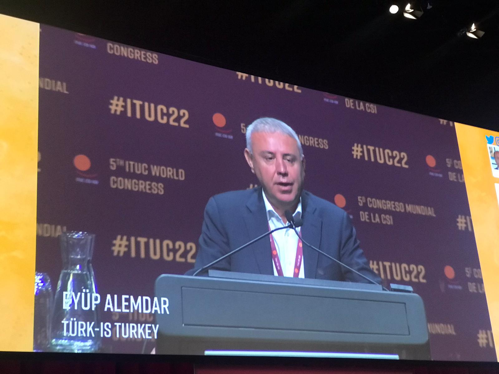 Kongreye, Türkiye İşçi Sendikaları Konfederasyonu Türk-İş adına Kongre delegesi olarak Petrol-İş Genel Başkanı Süleyman Akyüz ile birlikte Koop-İş Sendikası Genel Başkanı Eyüp Alemdar ve Türk Metal Sendikası Genel Mali Sekreteri Murat Salar katıldı. Türk-İş heyetine Türk-İş Uluslararası İlişkiler Uzmanı Hakan Sükun eşlik etti.