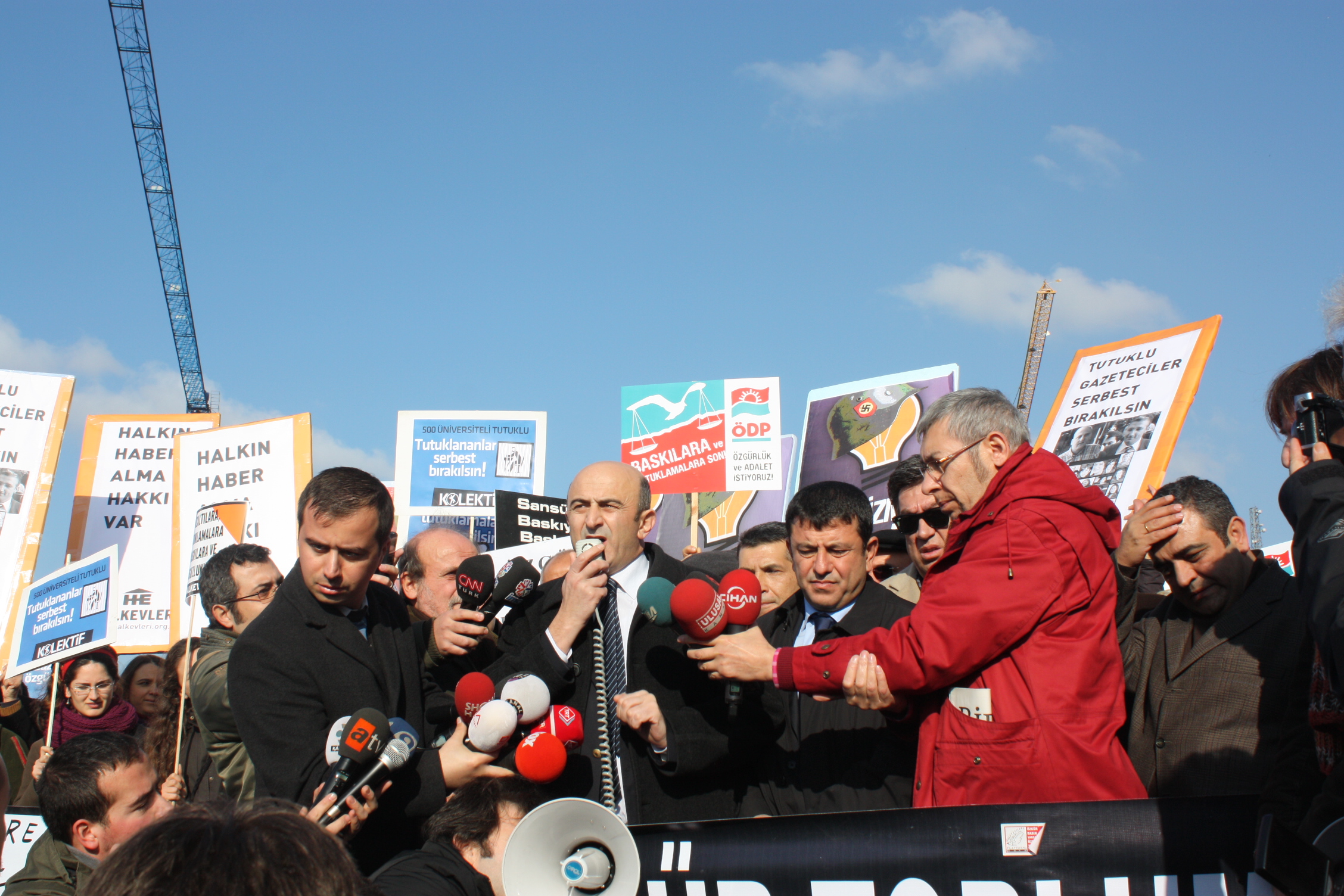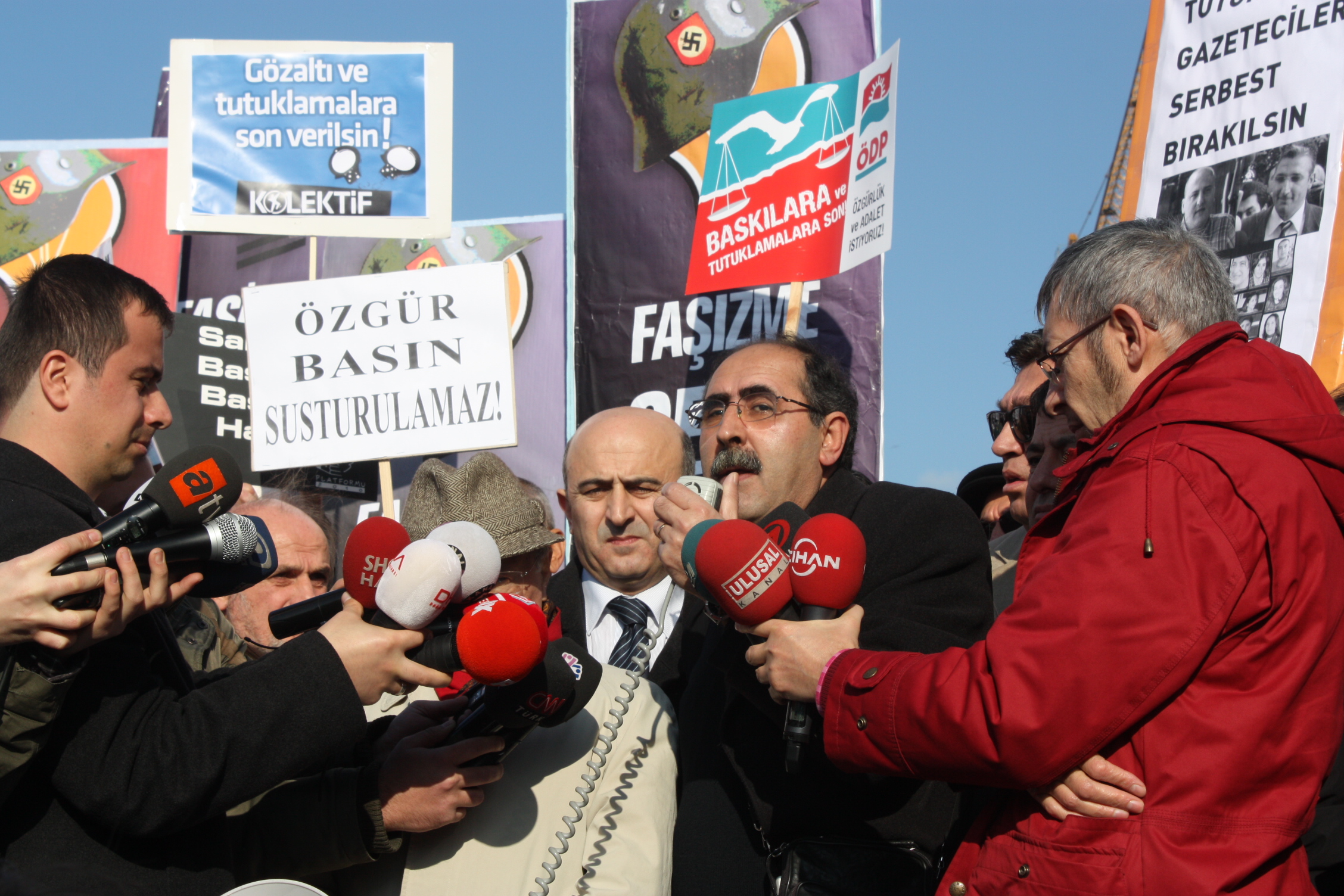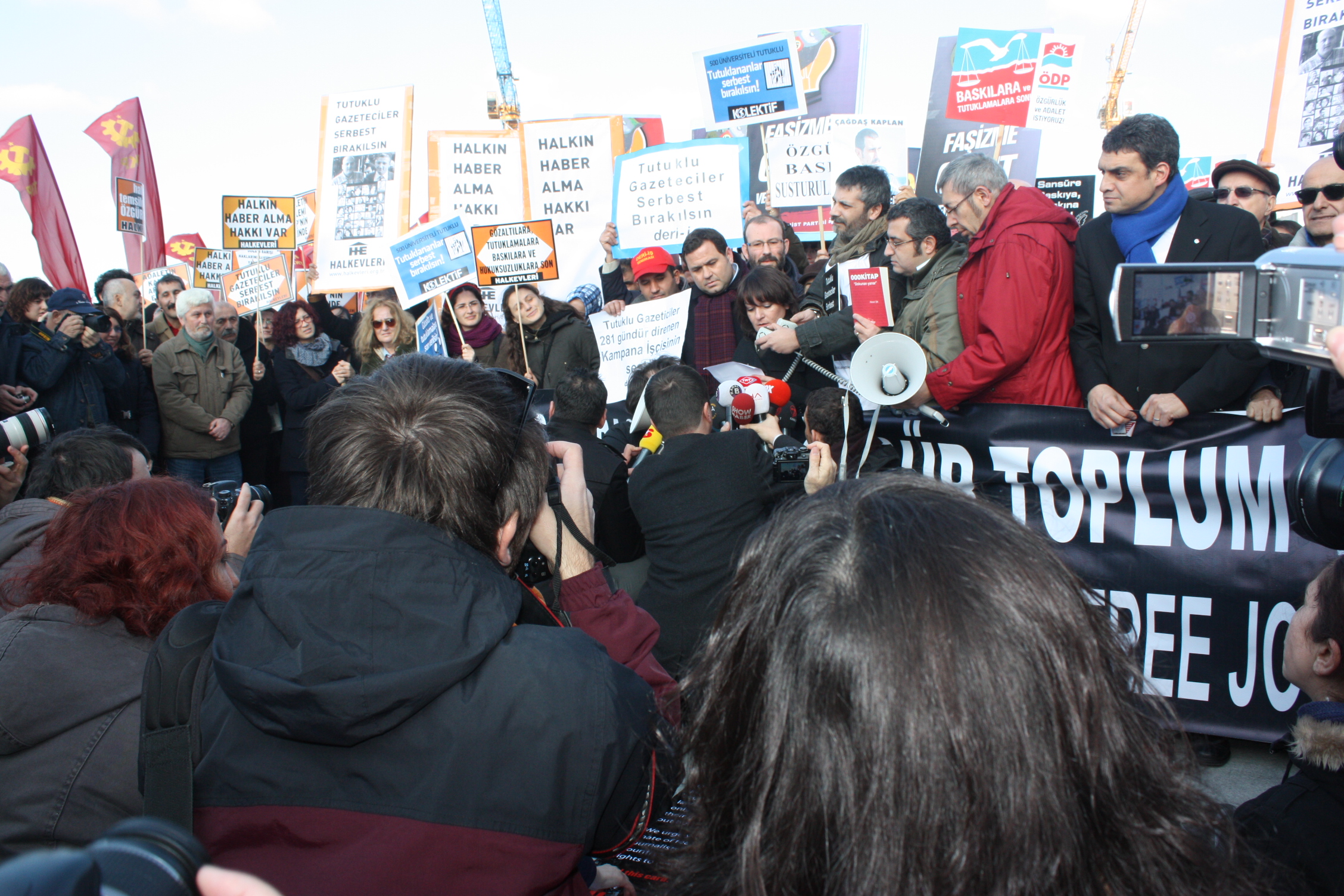 İstanbul Çağlayan Adliyesi’nde, 26 Aralık sabahı yapılan Odatv davasının 2. duruşmasını izleyen Türkiye Gazeteciler Sendikası, Türkiye Gazeteciler Cemiyeti, Gazetecilere Özgürlük Platformu,Çağdaş Gazeteciler Derneği, Ahmet ve Nedim’in Gazeteci Arkadaşları (ANGA), Avrupa gazeteci örgütleri, siyasi partilerin ve sendikaların temsilcileri, milletvekilleri, sivil toplum kuruluşlarının temsilcileri, gençlik örgütleri, yazarlar, aydınlar, okurlar, Adliye binası önünde yapılan kitlesel basın açıklamasında tutuklamaları protesto ettiler, “ Yargılanan Ahmet, Nedim ya da diğer gazeteciler değil, ifade özgürlüğüdür. Özgür basın susturulamaz” diyerek tepkilerini dile getirdiler, tutuklu gazetecilerin serbest bırakılmasını talep ettiler.