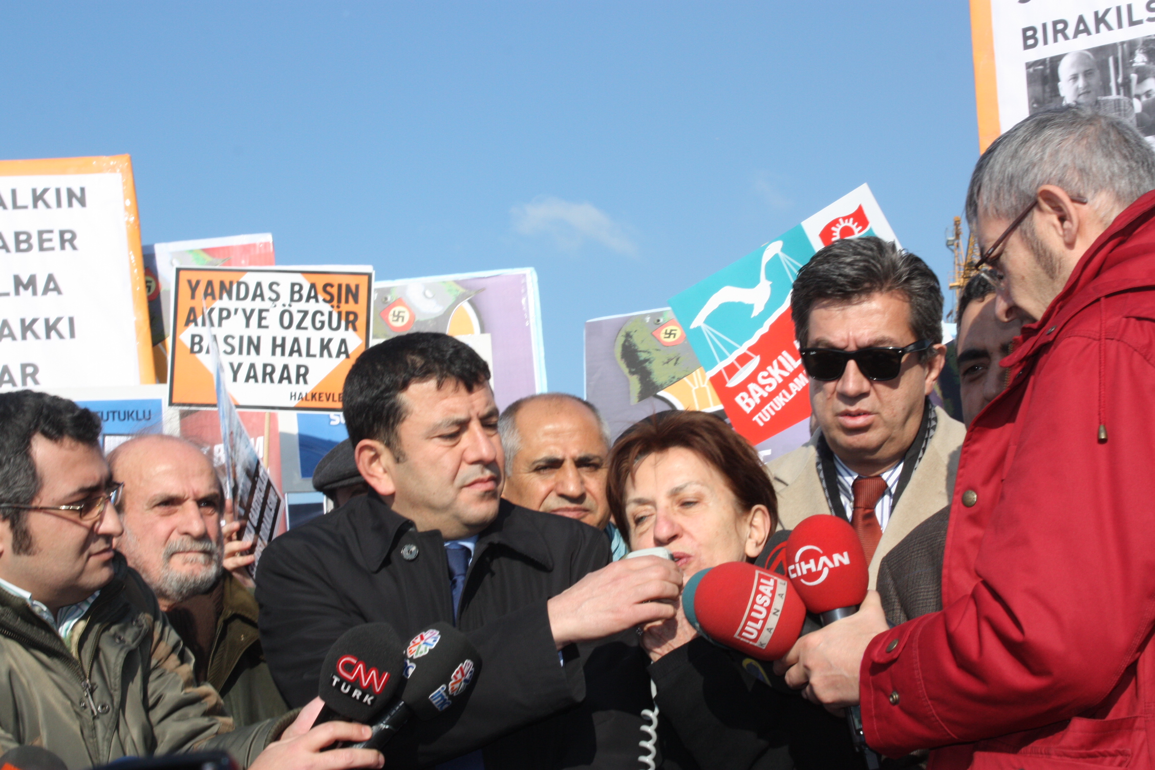 Ağaoğlu,”Önce yargı bağımsızlığını ortadan kaldırdılar. Şimdi basın özgürlüğünü ortadan kaldırıyorlar. Yargılanan basın özgürlüğüdür. Böyle bir durum, olağanüstü dönemlerde bile yaşanmadı. Basının işlevi, Resmi Gazete gibi görülüyor. Bizler bu mücadelede bedel ödeyenlerin yanındayız” dedi.