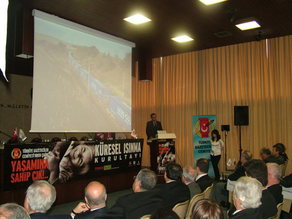 Milliyet Gazetesi Genel Yayın Yönetmeni Sedat Ergin küresel ısınmanın en büyük nedeninin insan faktörü olduğunu, gerekli önlemlerin alınmadığı takdirde bir sonraki kuşağın ciddi tehlikelerle karşı karşıya kalacağını söyledi. Ergin, Türkiye’nin Kyoto sözleşmesini hala imzalamadığını, bu konuda niyet ve kararlılık göstermediğini bildirdi. Akşam Gazetesi köşe yazarı Yavuz Semerci de, “ Türkiye’nin, sorunun çözümünde çok büyük bir katkısı olacağını düşünmüyorum. Sanayileşmiş ülkelerin bu sorunda payı çok yüksek. Türkiye çözümün küçük parçası fakat sorundan en fazla etkilenen ülkeler arasında bulunuyor” dedi. Hürriyet Gazetesi Ekonomi Müdürü Vahap Munyar da medyada küresel ısınmaya ilişkin haberlerin son yıllarda yer almaya başladığını, gazetelerin arka sayfalarında yıllarca buzulların erimeye başladığına ilişkin tek düze haberlerin verildiğini belirtti.