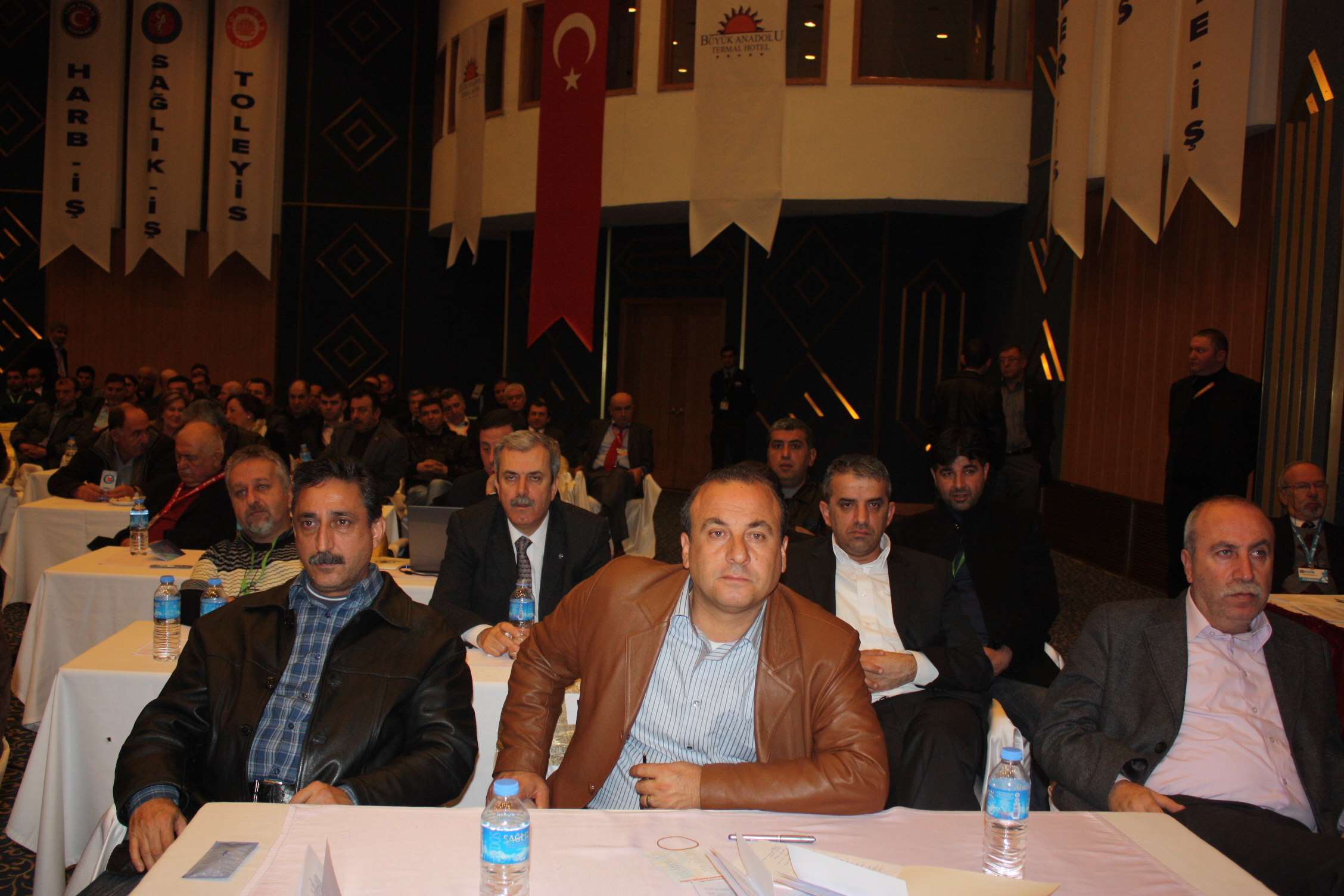 Türk-İş 21.Olağan Genel Kurulu’nun 3’üncü gününde genel merkez yöneticilerimizden; Genel Sekreter Ali Ufuk Yaşar, Genel Sekreter (Mali) İbrahim Doğangül, Genel Örgütlenme ve Eğitim Sekreteri Nimetullah Sözen, Genel Yönetim Sekreteri Ahmet Kabaca konuşmaları izliyorlar.