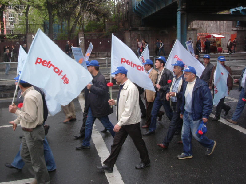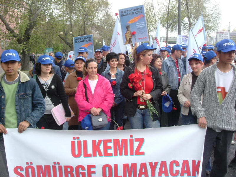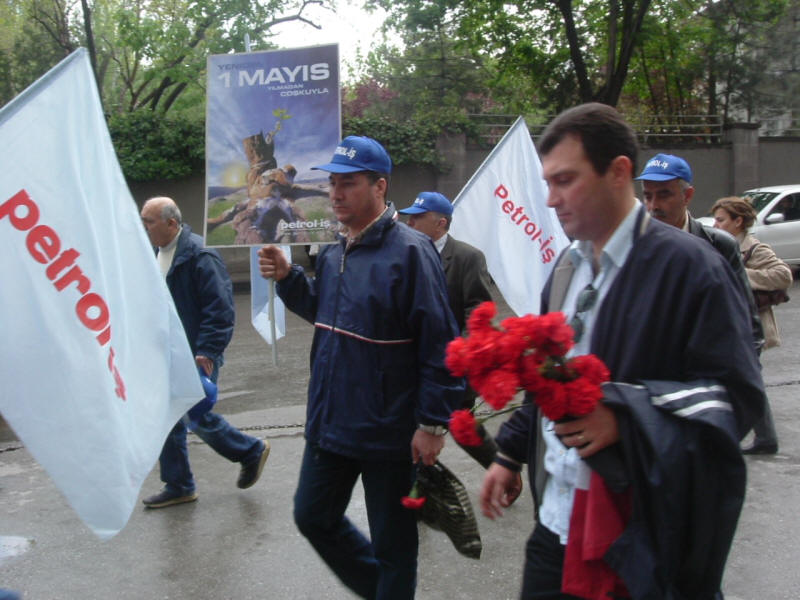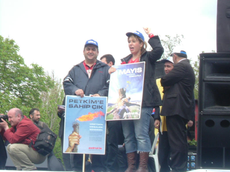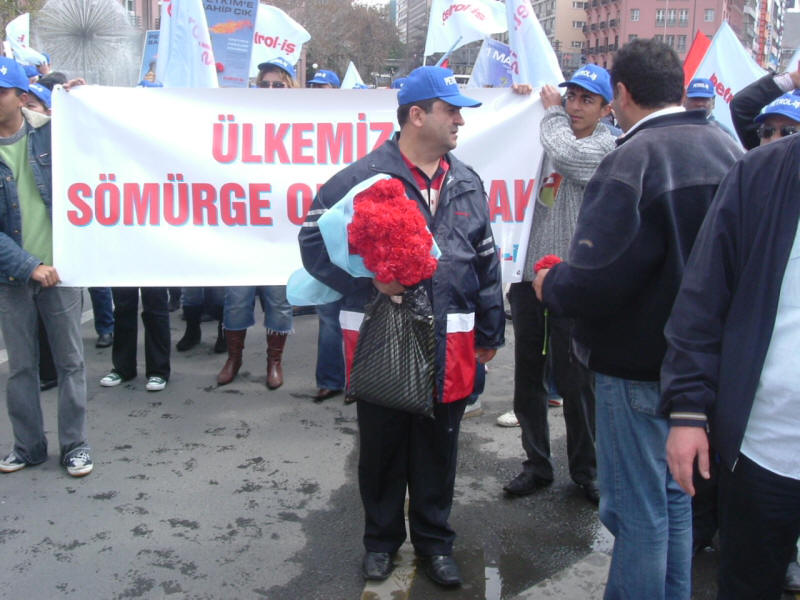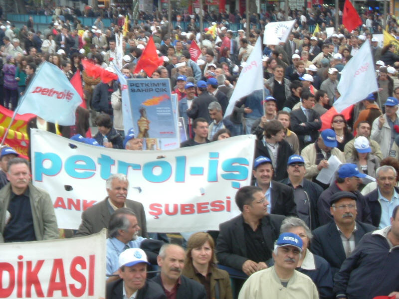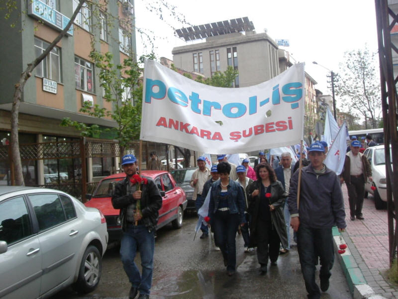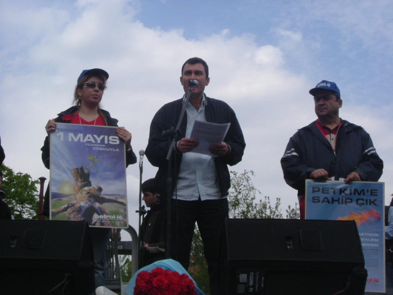 YAŞASIN 1 MAYIS!… ALANLARDAYIZ!….02/05/2007Ankara’da, Sıhhiye Meydanında kutladığımız 1 Mayıs’ta Alan’a büyük bir coşku hakimdi. Şubemize bağlı işyerlerimizden üyelerimizin yoğun katılımı ile gerçekleştirdiğimiz 1 Mayıs kutlamalarında Şube Başkanımız, Konfederasyonumuz adına bir konuşma yaptı.Yaşasın 1 Mayıs!Yaşasın İşçilerin Birliği!Saygılarımızla,Petrol-İş SendikasıAnkara ŞubesiŞube Başkanımızın 1 Mayıs’ta Sıhhiye Meydanında yaptığı konuşma metni Kardeşlerim;Bütün İşçi ve Emekçilerin Uluslararası birlik, mücadele ve dayanışma günü olan 1 Mayıs’ı kutlamak amacıyla Sıhhiye Meydanını dolduran çok değerli işçiler, kamu emekçileri, emekliler, öğrenciler ve kadınlarEmperyalizmin işgallerine;Kapitalizmin küresel saldırılarına;Yoksulluğa ve sömürüye hayır diyenler;Kardeşçe bir arada yaşamak isteyenler;Eşit, adil, özgür, demokratik ve insanca yaşanabilir bir Türkiye hedefleyenler,Hepinizi Sendikam Petrol-İş ve Konfederasyonum Türk-İş adına saygıyla ve sevgiyle selamlıyor; hoş geldiniz diyorum.2007 1 Mayısında biz işçi ve emekçiler alanlara; insanlık dışı koşullarda çalışmayı ve yaşamayı dayatan sermaye ve onun savunucularına karşı iş, ekmek ve özgürlük taleplerimizle çıkıyoruz. Tıpkı 121 yıl önce olduğu gibi;Küreselleşen kapitalizm, neoliberal politikalarla;Kendi insan;Kendi toplum;Ve Kendi devlet tipini yaratmaya çalışıyor. Sermaye başka bir dünya seçeneğini ortadan kaldırarak emekçileri tek tipleştiriyor ve daha çok kar etmenin araçları haline getiriyor. Biz bu saldırılara karşı direniyor ve bugün ülkemizin bütün meydanlarında hep birlikte haykırıyoruz.Başka Bir Dünya Mümkün! Bugün Ülkemizde emekçiler işsizlikle terbiye edilmeye çalışılıyorlar.Kayıt dışı istihdam bir türlü önlenmezken, 150 YTL’ye milyonlarca kaçak işçi insanlık dışı koşullarda çalışmaya zorlanıyor.Ostim’de, Sitelerde, Sincan Organize Sanayi de, Çubuk’ta, Akyurt’ta ve Elmadağ’da her türlü sosyal güvenceden yoksun sendikasız, sigortasız ve düşük ücretle kölece çalıştırılan işçi kardeşlerimiz, anayasal haklarını kullanarak örgütlenen, örgütlendiği için işten atılan, silahlı saldırıya uğrayan Horoz Nakliyat İşçileri, Deri İşçileri, Tekstil İşçileri; çokuluslu şirketlere dikensiz gül bahçesi sağlamak amacıyla oluşturulan serbest bölgelerde; çok öğünülen Avrupa Birliği üyesi ülkelere ait şirketlerde çalışan ve 8,5 aydır grevde olan; hamile kalacağı günü dahi patronlarının belirlediği Novamed işçileri, 1886’da Chicago’da mücadeleye başlayan emekçiler gibi diyorlar ki;Çok çalışmaktan yorulduk.Yaşamaya ancak yetecek kadar para,Düşünceye zaman yok,Güneş ışığını hissetmek istiyoruz.Tanrının bunu istediğinden eminiz.Ve ekliyorlar,Bizim de, sadece insan olduğumuzu anlamalarını istiyoruz.Bugün Ülkemizde,Ekonomik kararların IMF, DB, DTÖ tarafından alındığı, siyasi kararların ise Brüksel’den verildiği AKP hükümeti eliyle de hayata geçirildiği bir süreci yaşamaktayız. AKP hükümeti 4,5 yıllık iktidarı sürecinde yol açtığı ekonomik, siyasal ve sosyal krizlerin faturasını emekçilere kesmek niyetindedir. Yağma Yok!Krizi kimler yaratıyorsa, artık faturayı da onlar ödeyecektir.Kriz senaryoları ile;- Kıdem Tazminatımızın fona devredilmesi veya kaldırılmasına,- İşsizlik sigortası fonuna dokunulmasına,- Asgari Ücretin Bölgesel olarak uygulanmasına,- İşçi ve emekçilerin vereceği cevap………GENEL GREVDİR, GENEL DİRENİŞTİR…………Kardeşlerim;Eğitim, sağlık, sosyal güvenlik ve tüm kamu hizmetleri paralı hale getirilmek isteniyor.25 yıldır Devleti küçültmek ve sosyal devleti yıkmak amacıyla gerçekleştirilen özelleştirmeler fiyaskoyla sonuçlanmıştır.Şimdi sıra yeraltı kaynaklarımızın sömürülmesine gelmiştir. Irak’ta işgalle hayata geçirilmek istenen, Ülkemizde “Türk Petrol Kanunu” ile hayata geçirilmek isteniyor. Böylece Milli Petrol Kuruluşumuz TPAO’da tasfiye edilmek isteniyor.İşte sonuç ortada;Ne geçti elinizeTüpraş’ı, Erdemir’i, Telekom’u, Sekayı, Seydişehir Aliminyum’u, Limanları, sattınız.Ne geçti elinizeHani istihdam yaratacaktınız, işsizlik kalmayacaktı.Hani iç ve dış borçların tamamını ödeyecektiniz.Bunların birer yalan olduğu bugün herkes tarafından anlaşılmıştır.Yetmedi.Yandaşlar daha çok hortumlanmak istiyor.Şimdi sıra Petkim’de, Tekel’de, Şeker Fabrikalarında, THY, Milli Piyangoda, Vatan Topraklarında, Ormanlarda, Gayrimenkullerde, Ancak şu bilinmelidir ki;Sınıf mücadelesine inanan sendikaların birleşik mücadelesi ile, özelleştirmeye karşı 20 yıldır verilen mücadeleyi vermeye devam ediyoruz.Tekel’i, Şekerleri, THY, Milli Piyangoyu, vatan topraklarını, ormanları özelleştiremeyecek.Petkim’in meşalesini söndüremeyeceksiniz.Gelin kardeşlerim ellerinden bizim olanları da alalım.Tüpraş’ı, Telekom’u, Erdemir’i, Sümerbank’ı, Limanları, Seka’yı ve diğerlerini kamulaştıralım.14 Nisan’da Tandoğan’da, 29 Nisan’da da Çağlayan’da AKP Hükümetine verdiğimiz mesaj gerçekten takdire şayandır.Ancak Unutulmamalıdır ki bu irade işçi ve emekçiler başta olmak üzere halkımızla birlikte, bu hükümeti iktidara taşıyan emperyalizme ve sermayeye karşı da verilmelidir.Bu fabrikalarda çok uluslu tekellerin bayrağı dalgalandığı sürece ne Cumhuriyete sahip çıkabilir ne de ekonomik ve siyasal bağımsızlığımızdan söz edebiliriz.Gelin bağımsızlığımızın simgesi olan bayrağımızı ülkemizdeki bütün fabrikalara dikelim.Ve;Ne Büyük Ortadoğu projesinde eş başkanlığına soyunarak Cumhuriyet ve Devrimlerini içine sindiremeyenlere geçit verelim ne de demokrasimizin kesintiye u