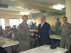Sendikamız tarafından tüm üyelerimiz için yaptırılan kol saatlerini Şube Başkanımız A.Gani GÜNDOĞDU, DYO Boya Fabrikası işyerinde 21 Aralık 2006 günü üyelerimize dağıtmıştır. Üyelerimiz başkanın şahsında sendikamızPETROL-İŞ’ e alkışlarla teşekkür etmiştir.