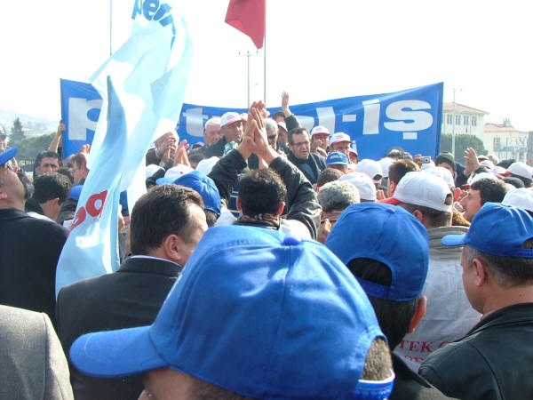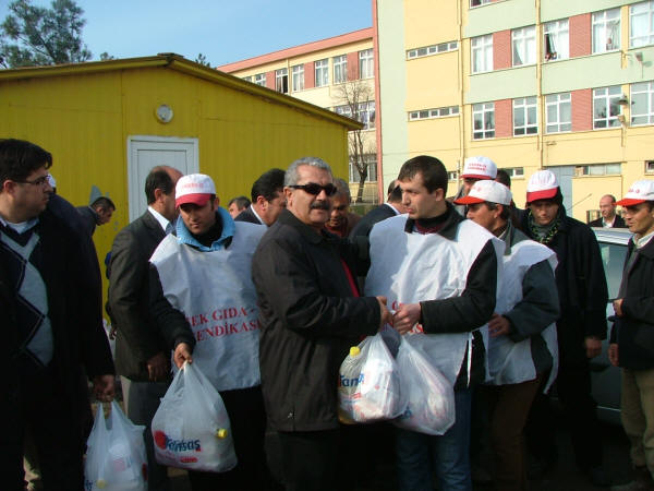 22 Şubat 2008 Cuma günü Türk-İş İzmir Bölge Başkanı Mustafa Kundakçı ve TÜRK-İŞ’e bağlı sendika yöneticileri ve işyeri temsilcilerinin katılımı ile saat 10.00 da TÜRK-İŞ önünde basın açıklaması yapıldı. Daha sonra Balıkesir Susurluk’ta işten örgütlü oldukları için işten çıkartılan 402 işçiye moral ve destek vermek için araçlarla hareket edildi. Şubemiz yöneticilerinin ve işyeri temsilcilerinin de katıldığı destek ziyareti ile İzmir’de hazırlanan gıda paketleri eylemde bulunan işçilere verildi.